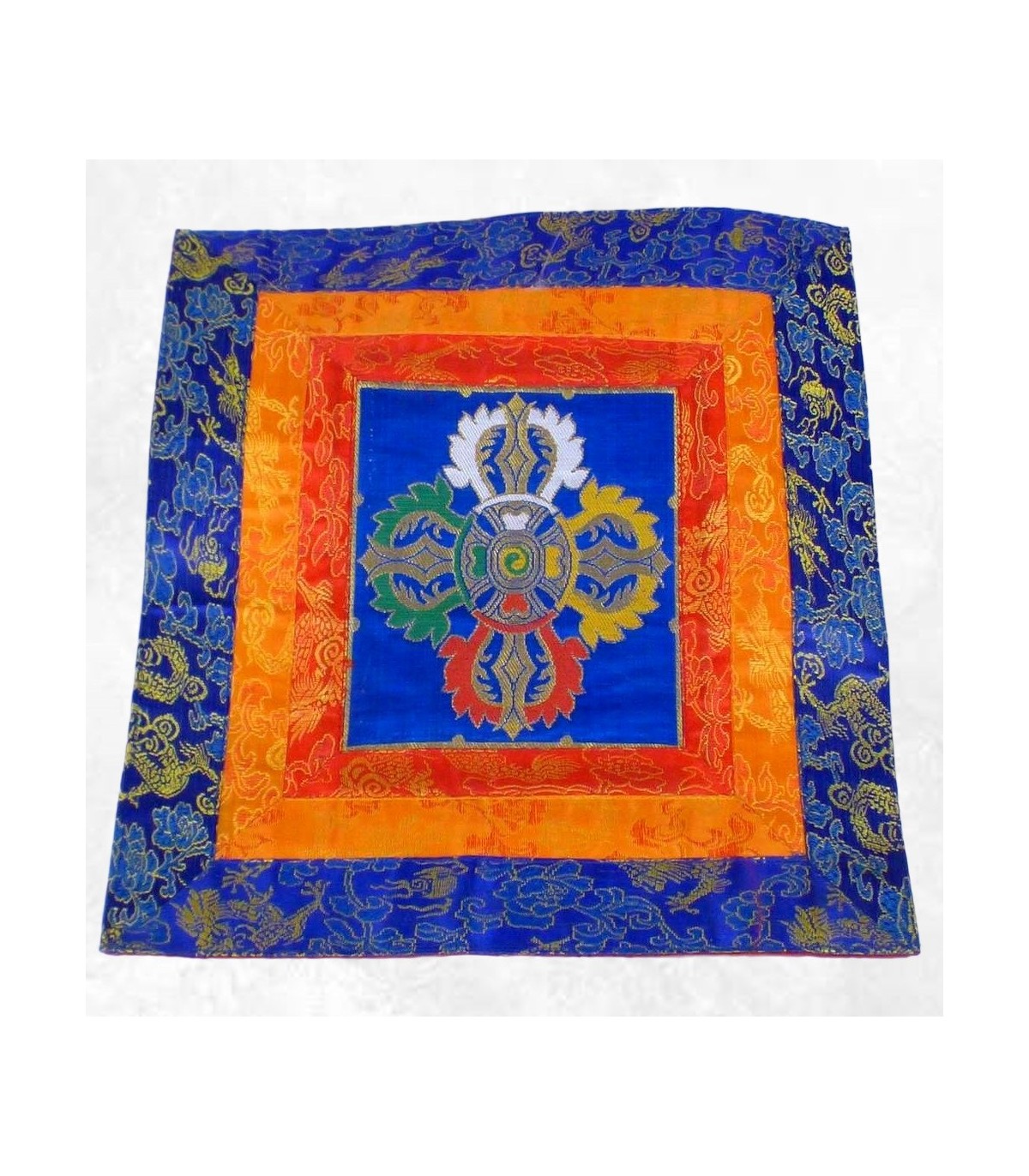 Nappe pour autel bouddhiste fond bleu en soie 38 x 38 cm – Artisanat du Népal