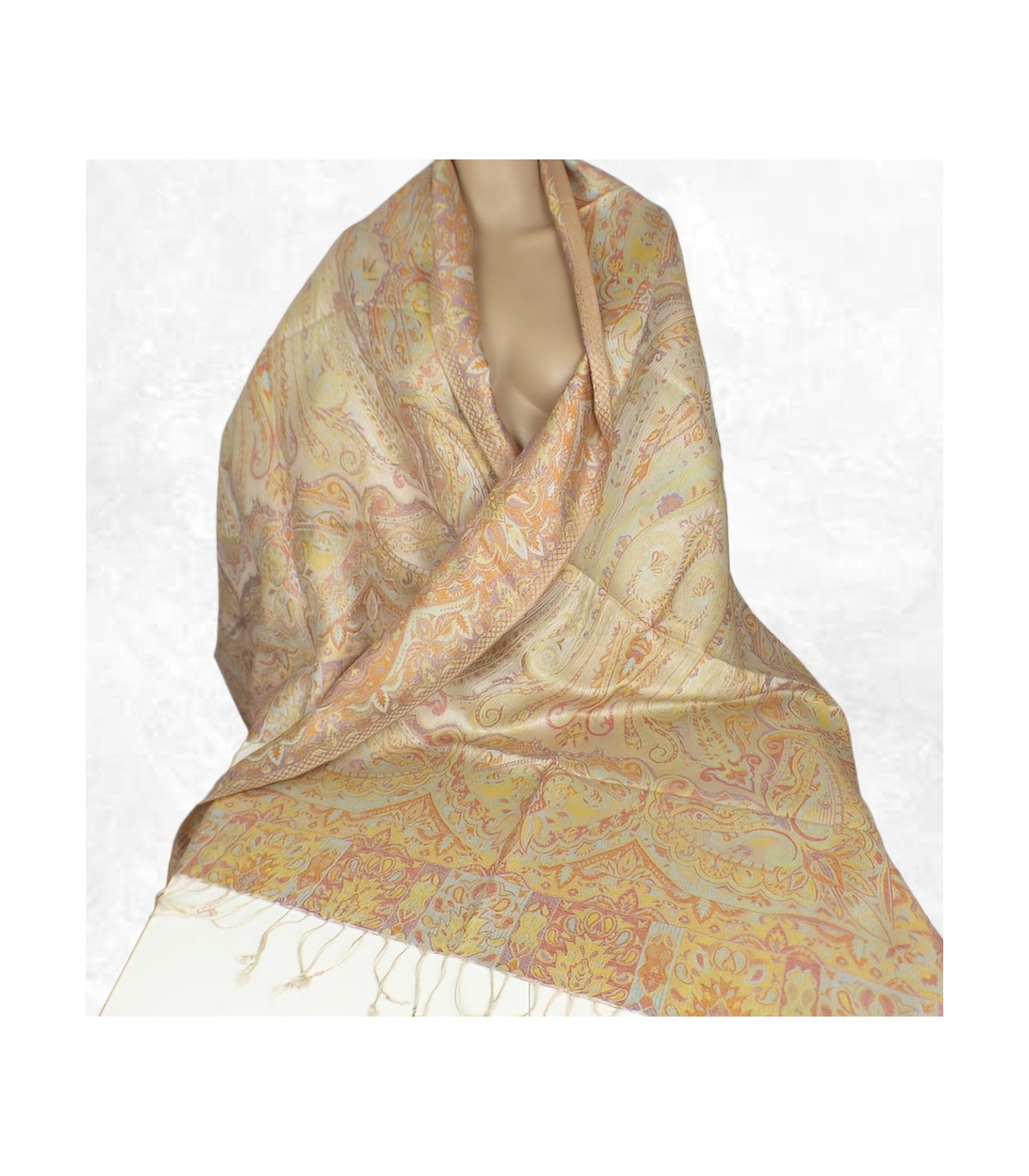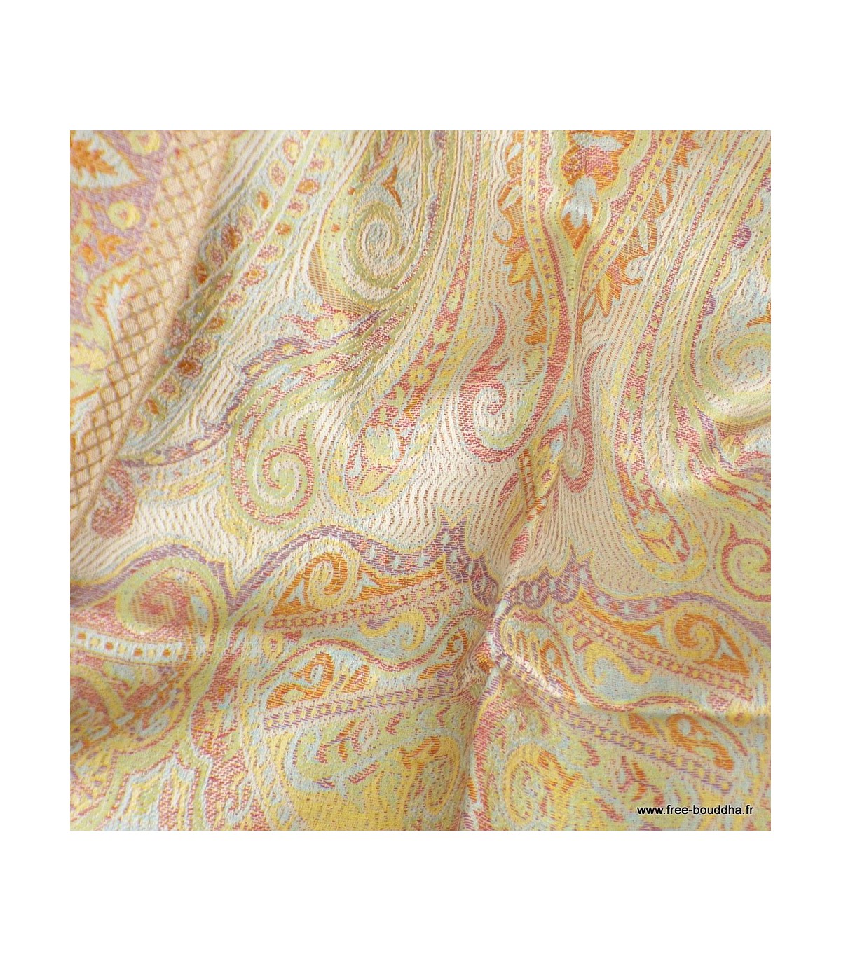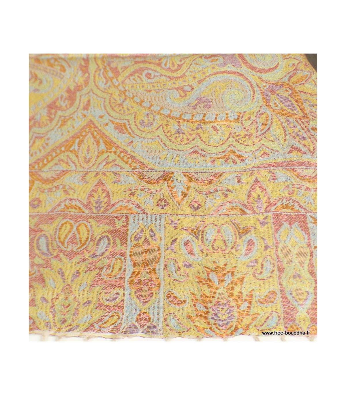 Pashmina en soie authentique – Jaune rouille motifs cachemire