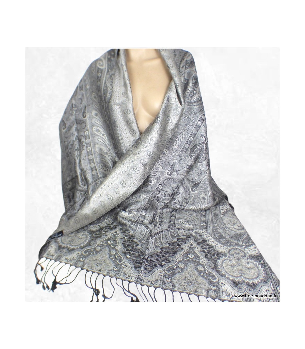 Pashmina en soie nuances de gris argent