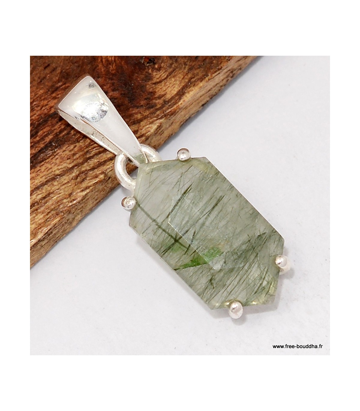 Pendentif Actinolite verte facettée argent 925