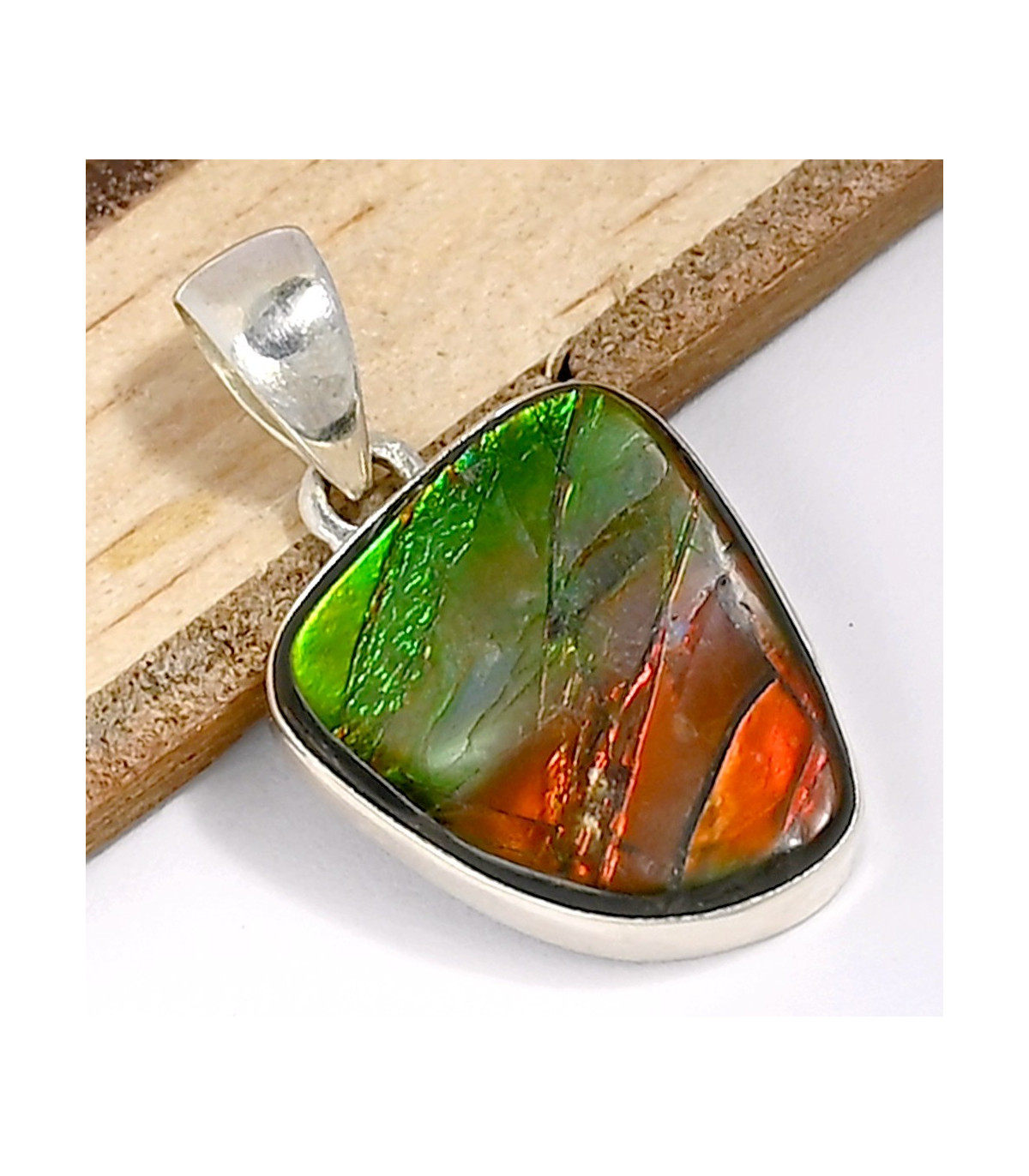 Pendentif Ammolite du Canada rouge verte qualité AAA