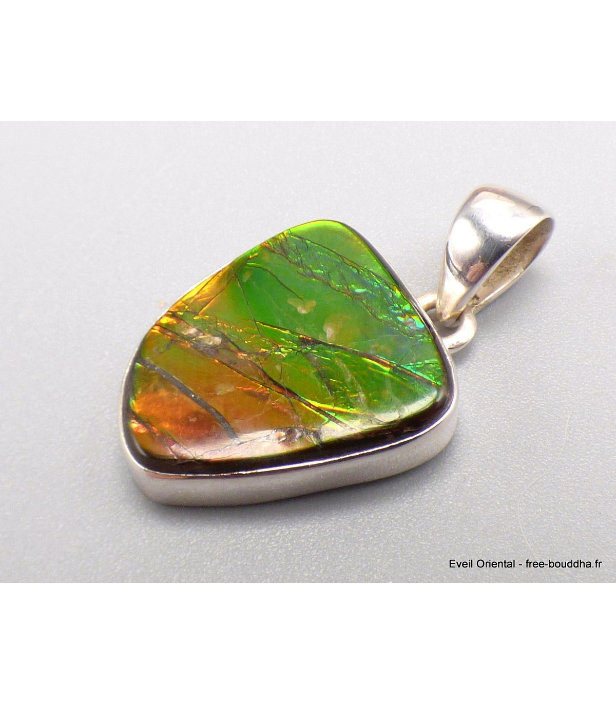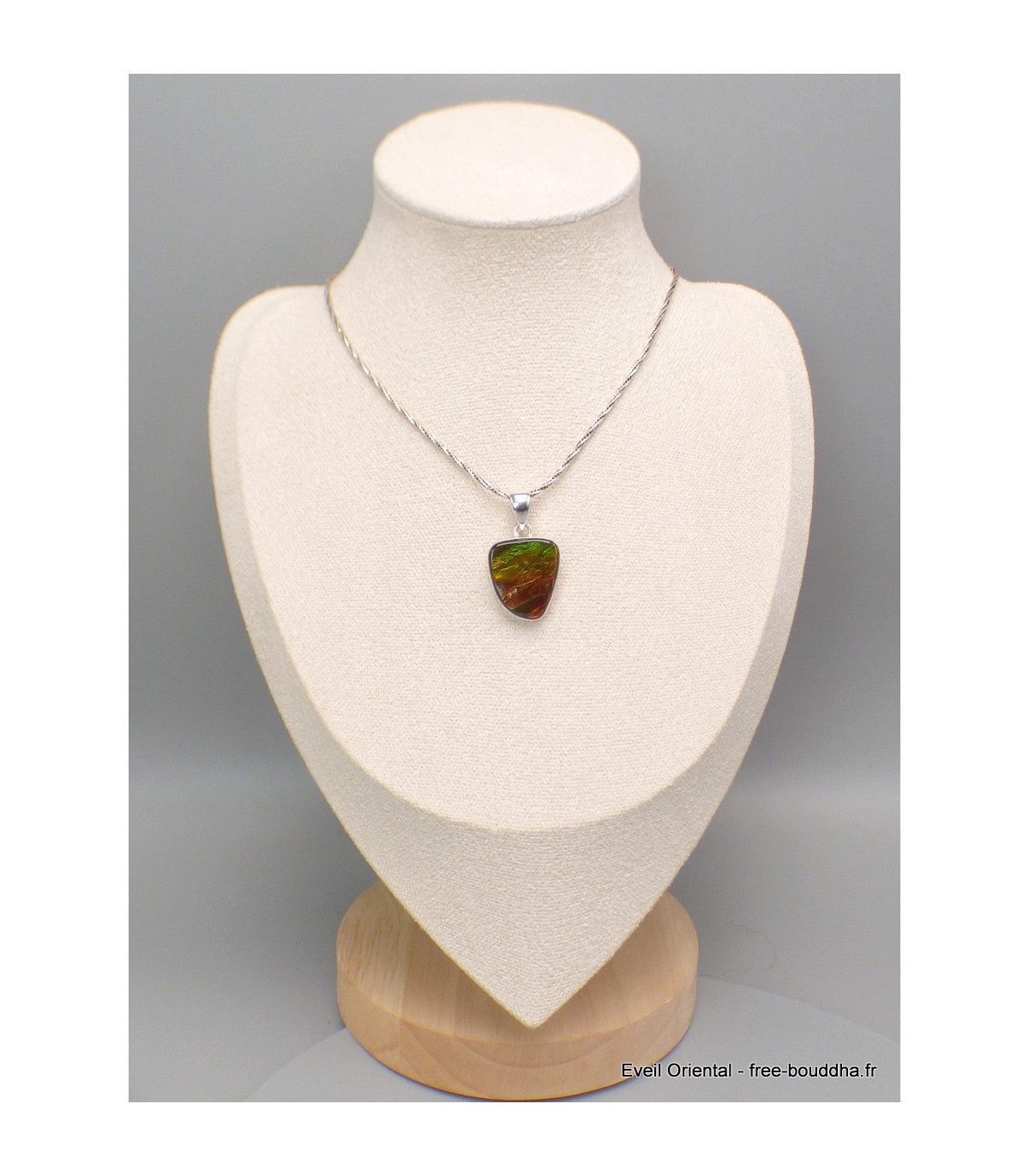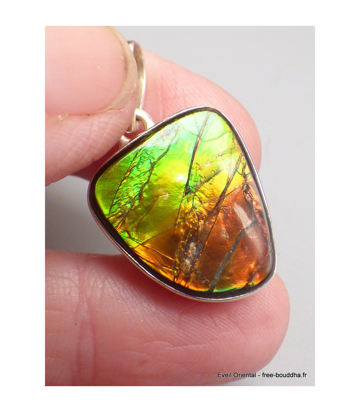 Pendentif Ammolite du Canada rouge verte en argent 925