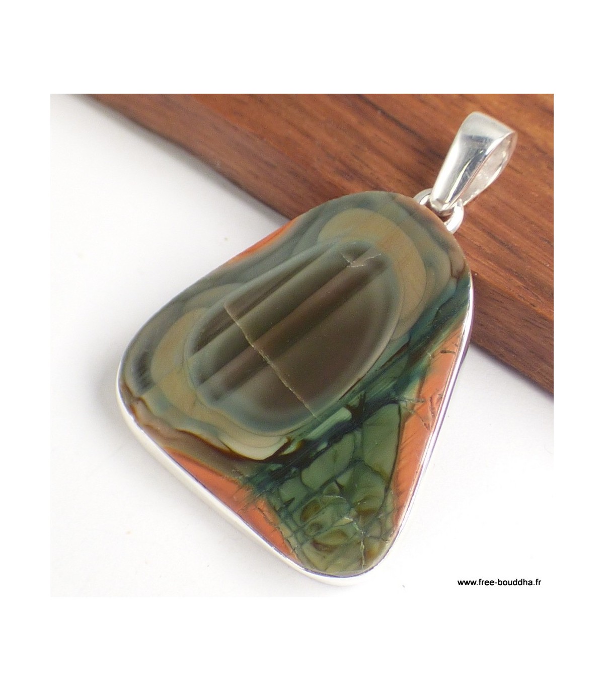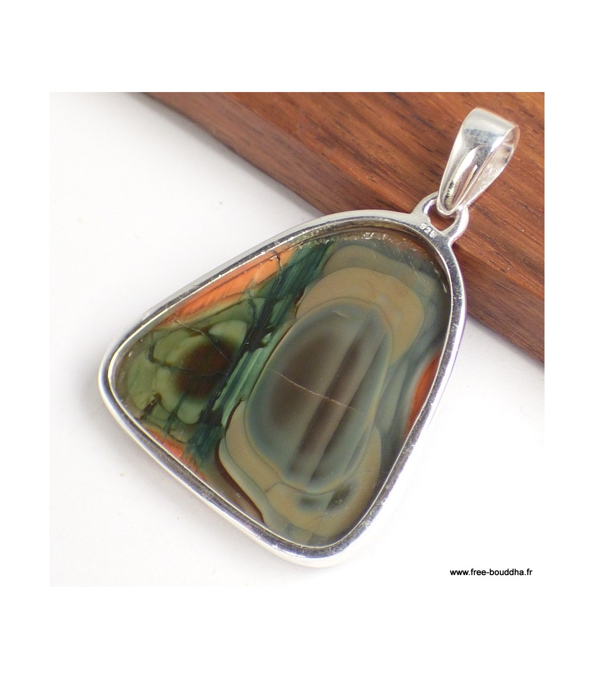 Pendentif Jaspe impérial forme libre argent 925 véritable