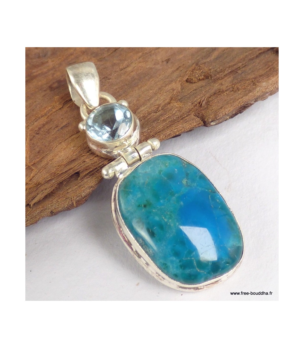 Pendentif en argent 925 – Opaline et Topaze bleue véritables