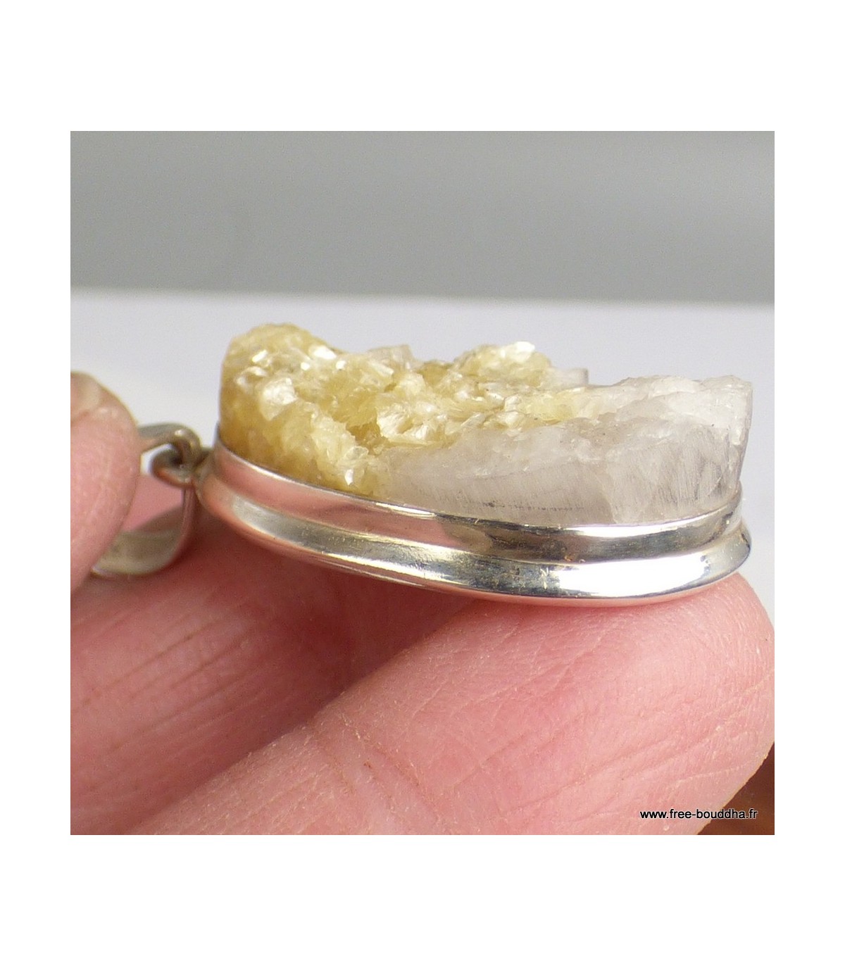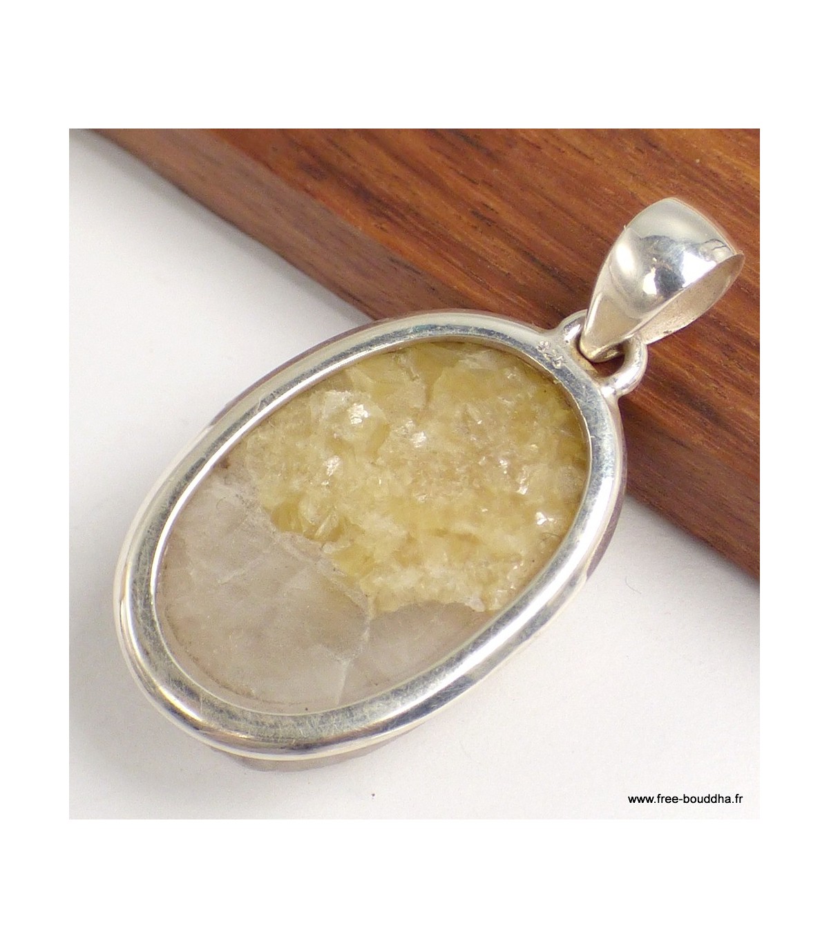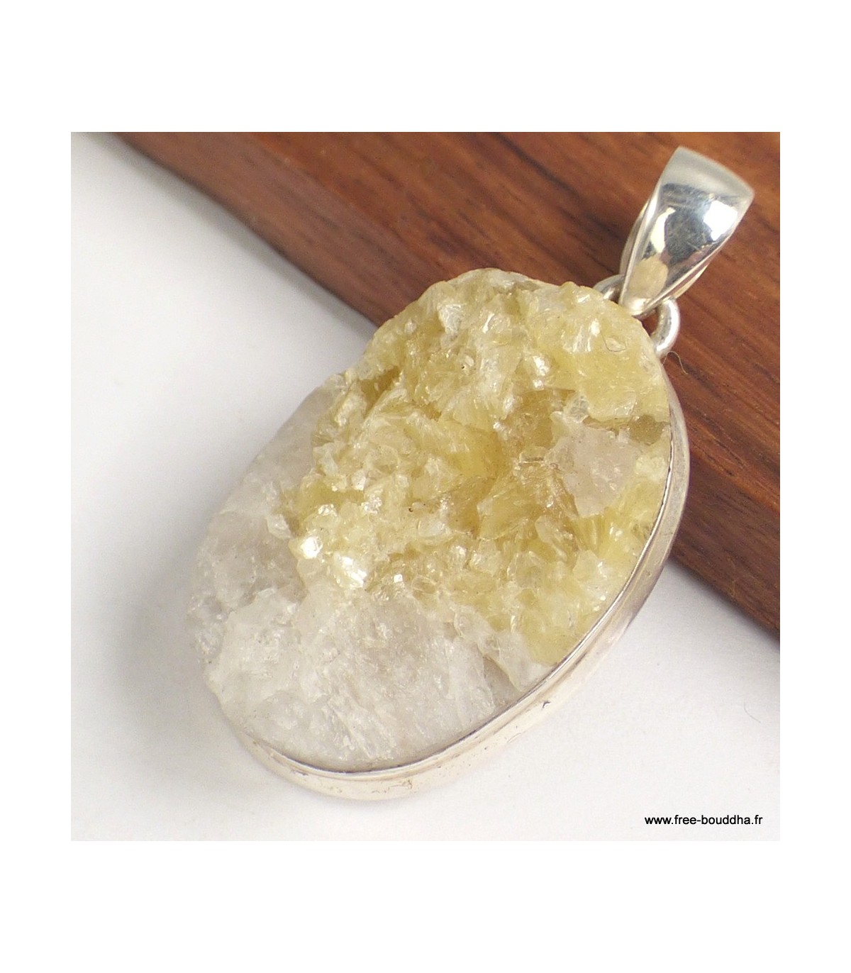 Pendentif Lépidolite jaune ovale brut argent 925 véritable