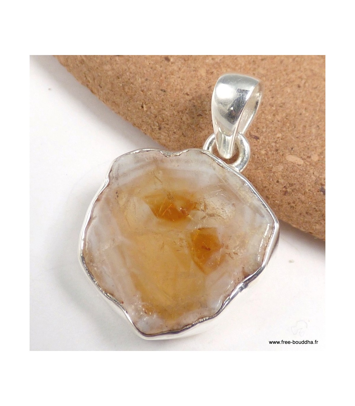 Pendentif Citrine stalactite forme libre argent 925