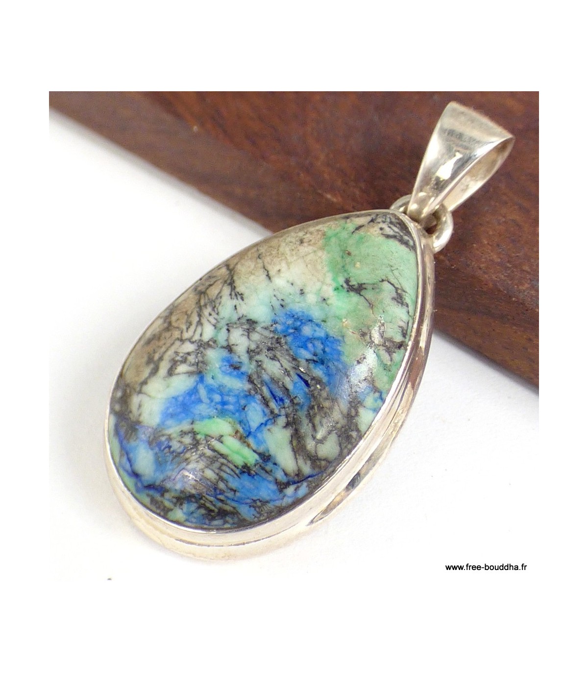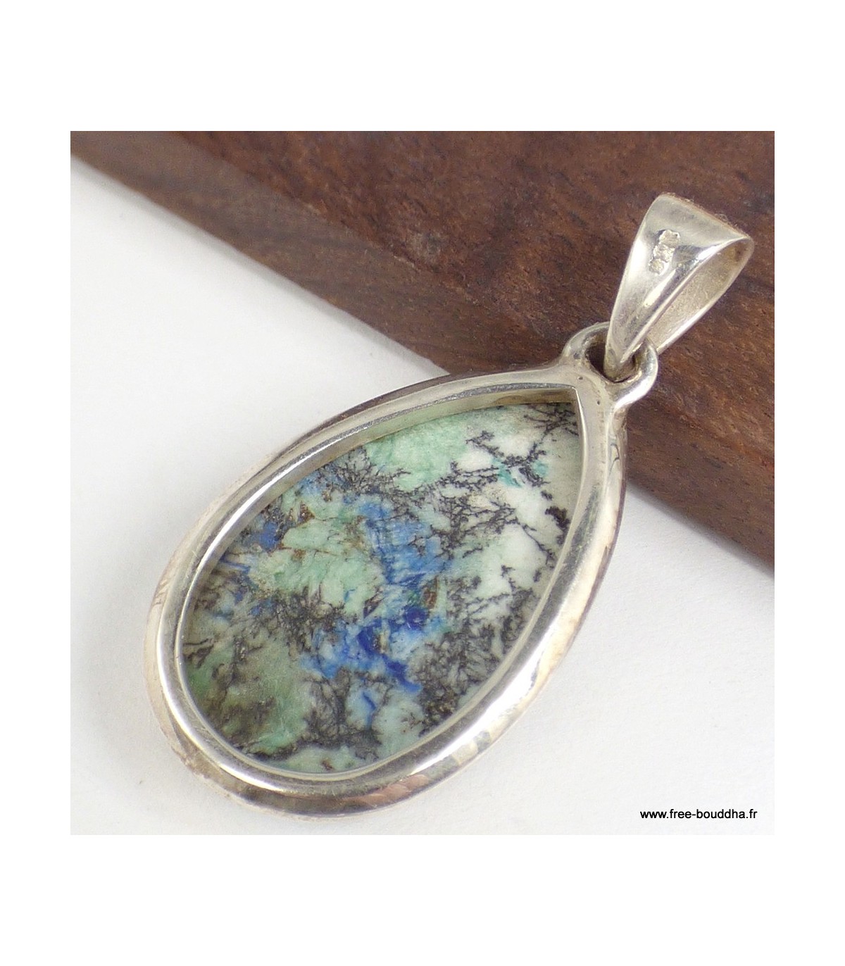 Pendentif bijou Azurite naturelle forme goutte argent 925