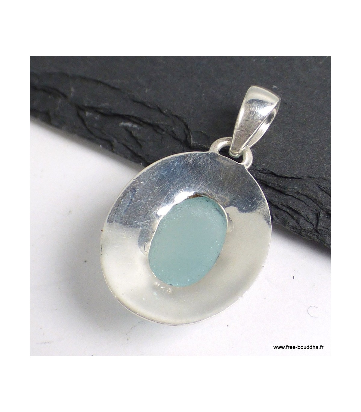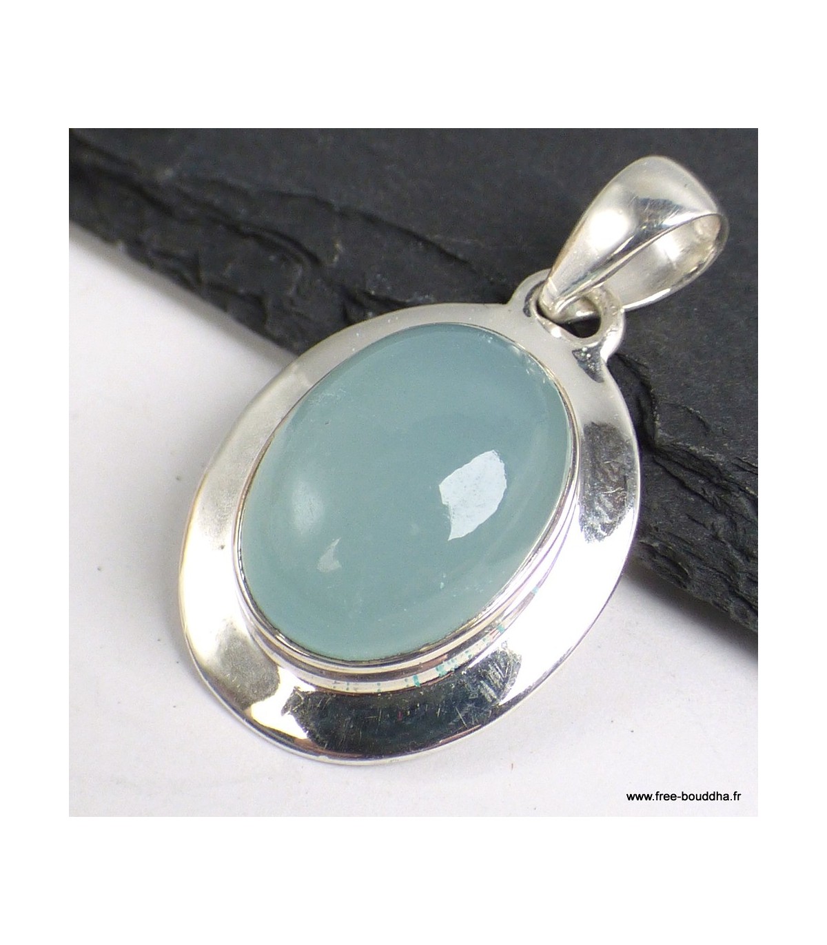 Pendentif ovale Calcédoine d’eau – Argent 925 certifié