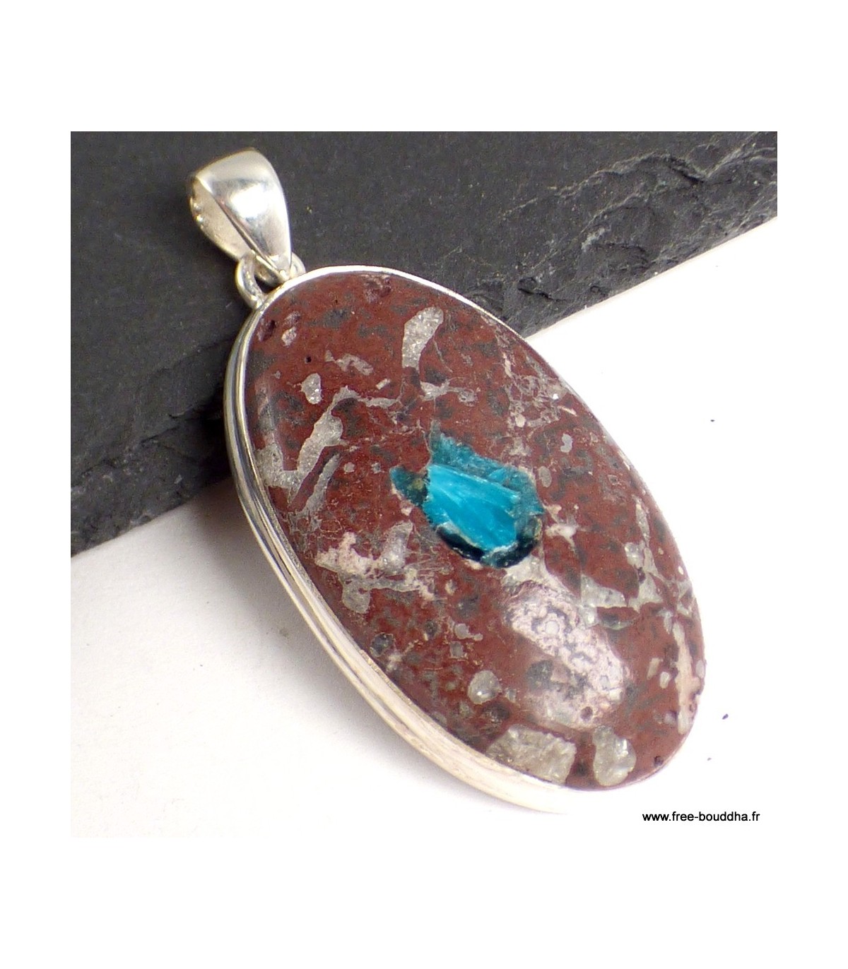 Pendentif en Cavansite sur roche-mère et Argent 925