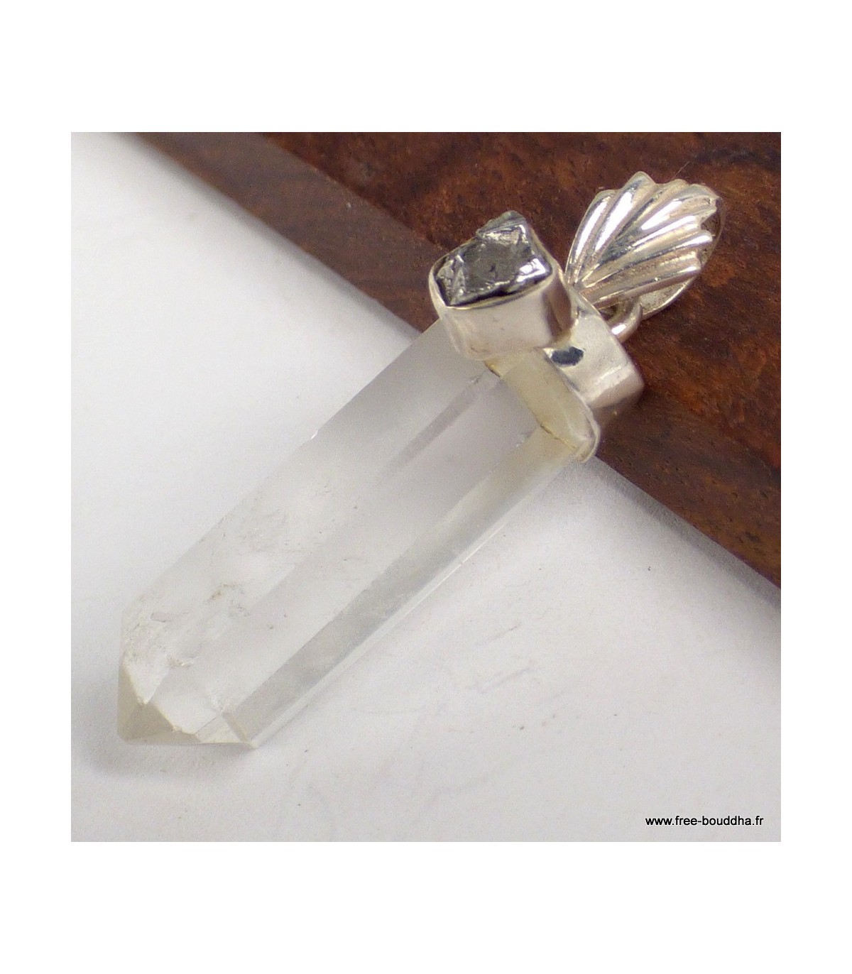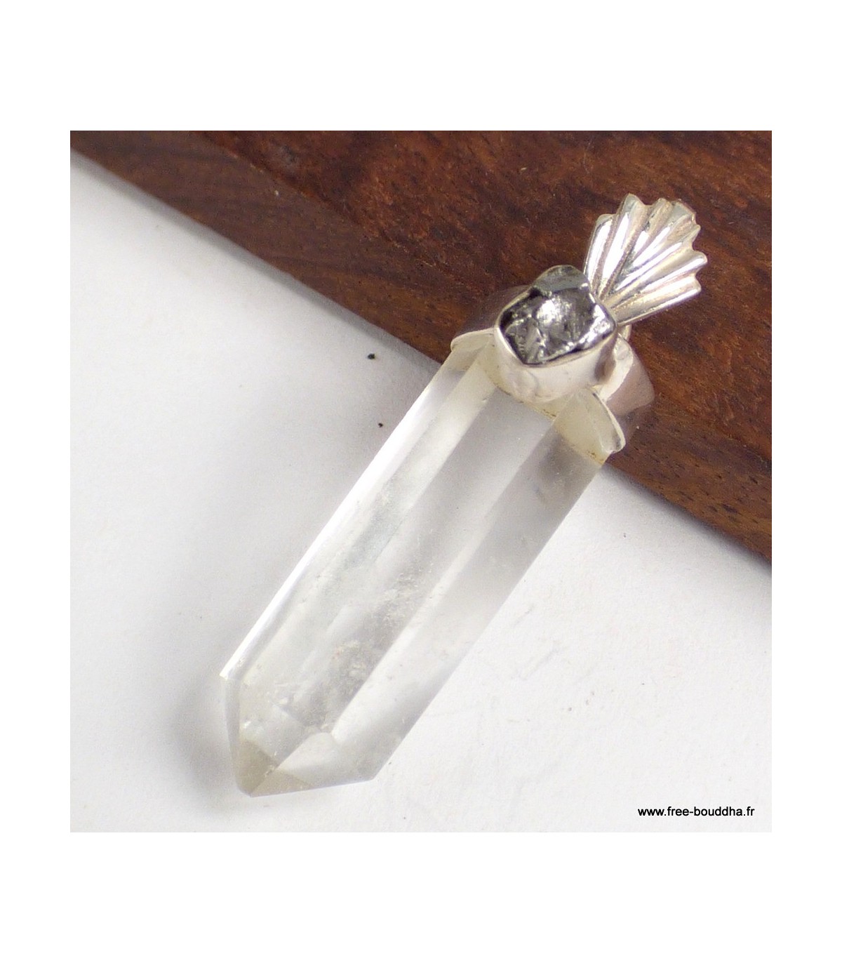Pendentif en Cristal de roche brut Campo del Cielo et argent 925