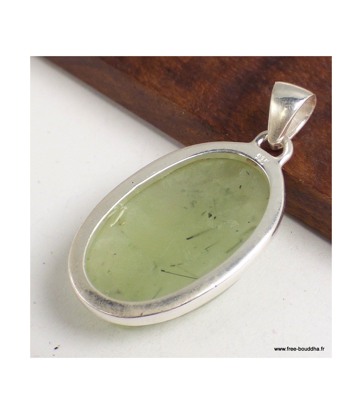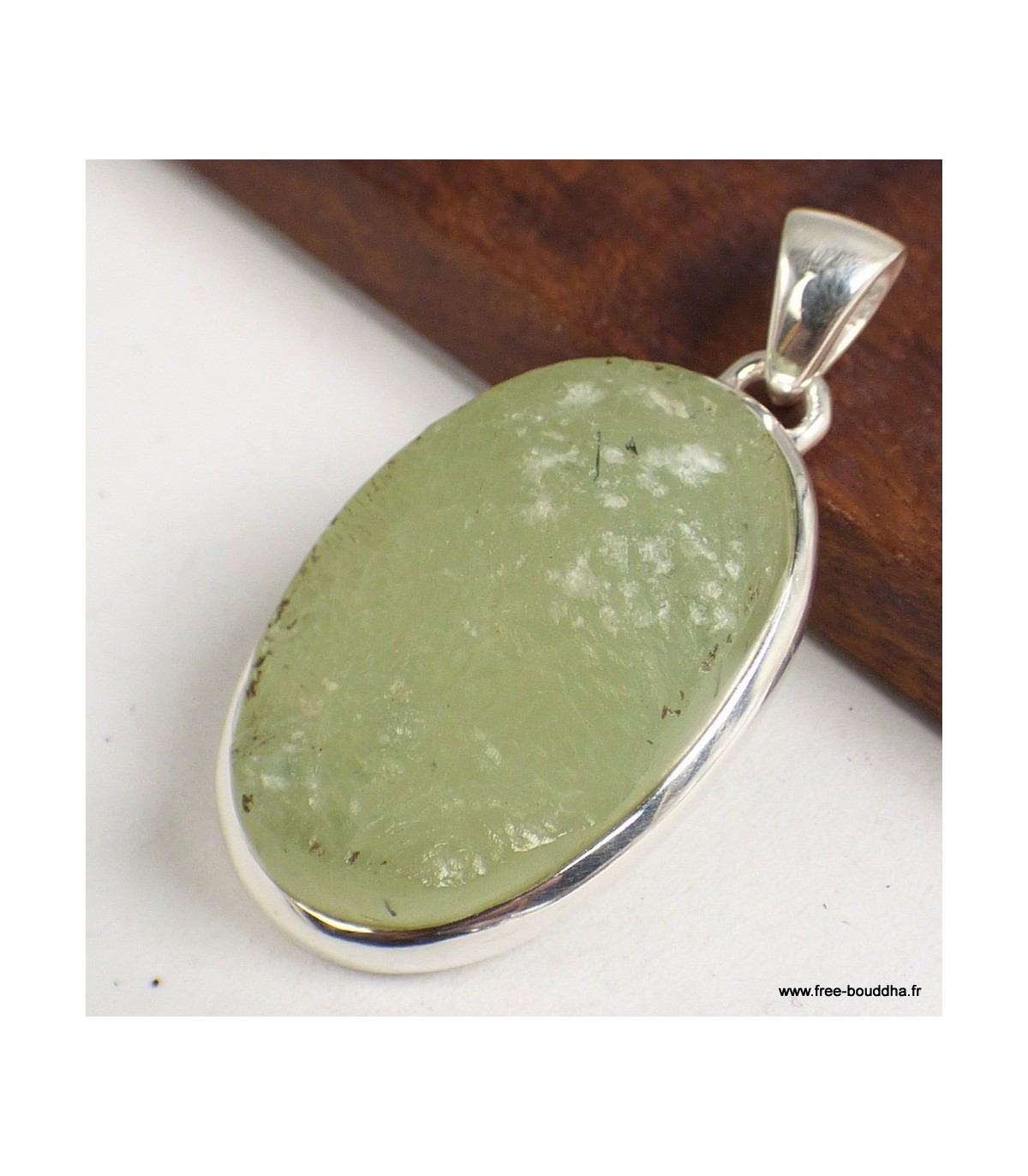 Pendentif en Préhnite brute forme ovale – Argent 925 poinçonné