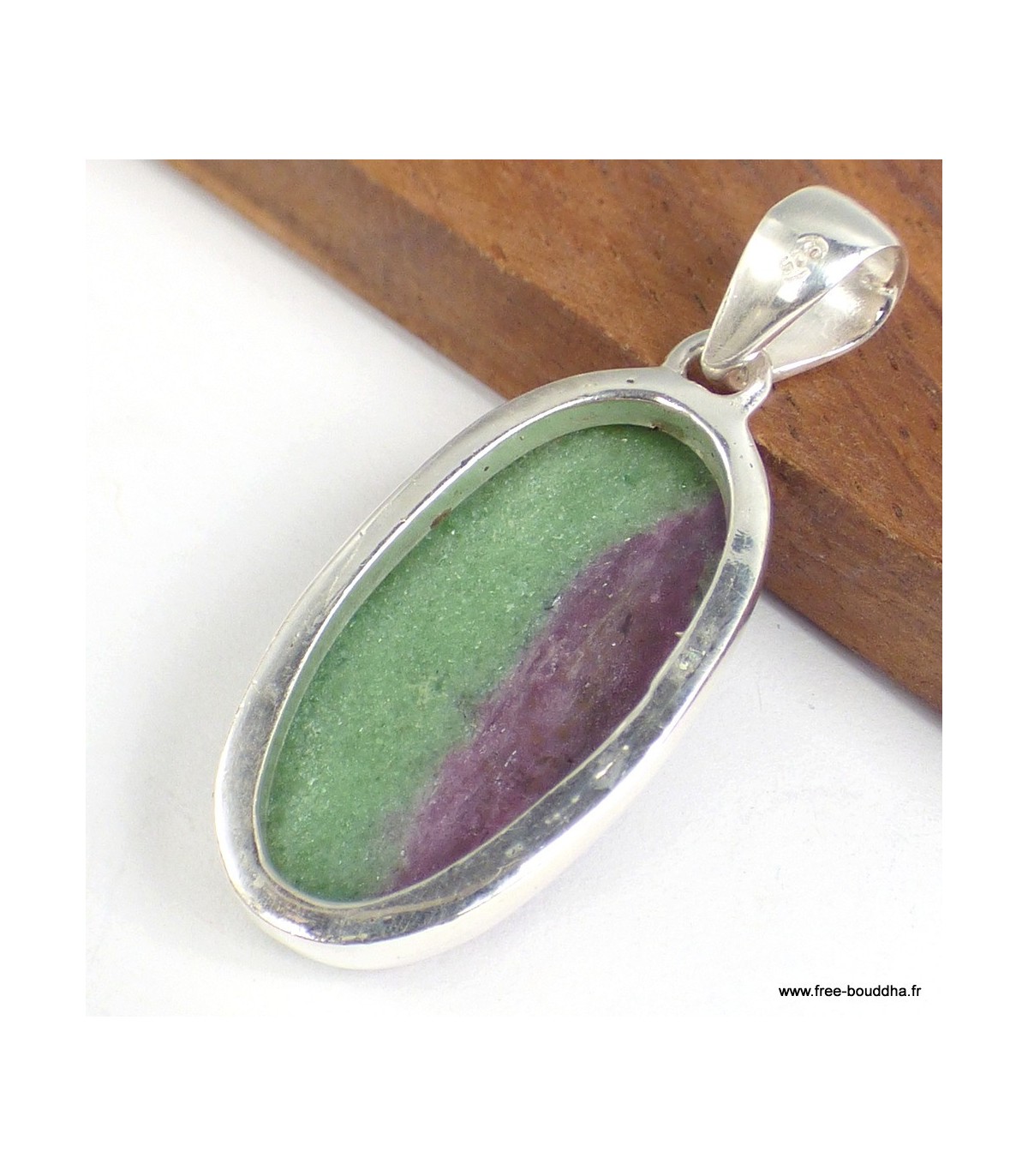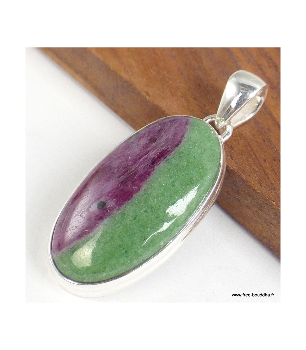 Pendentif bijou Rubis sur Zoïzite ovale argent 925