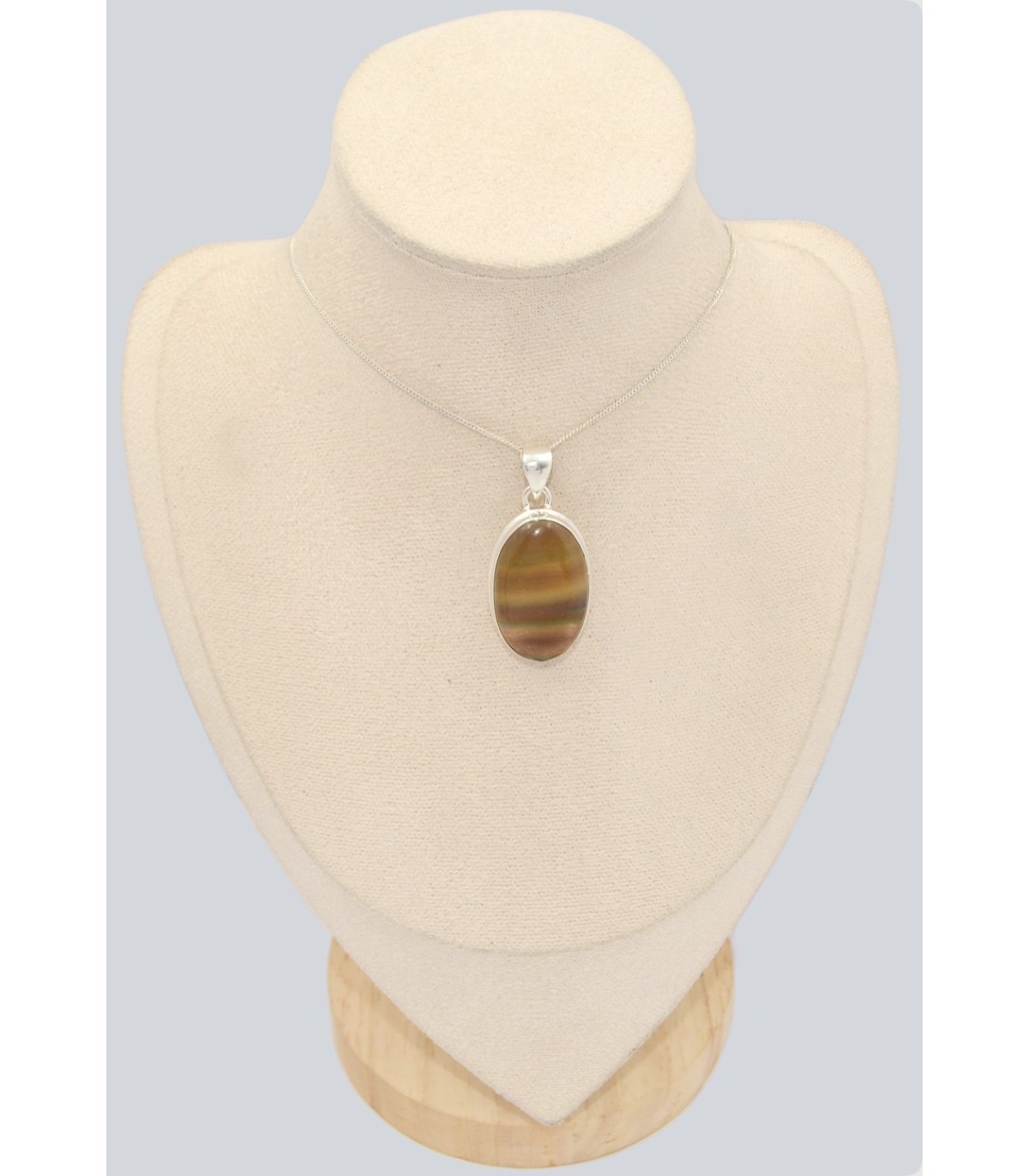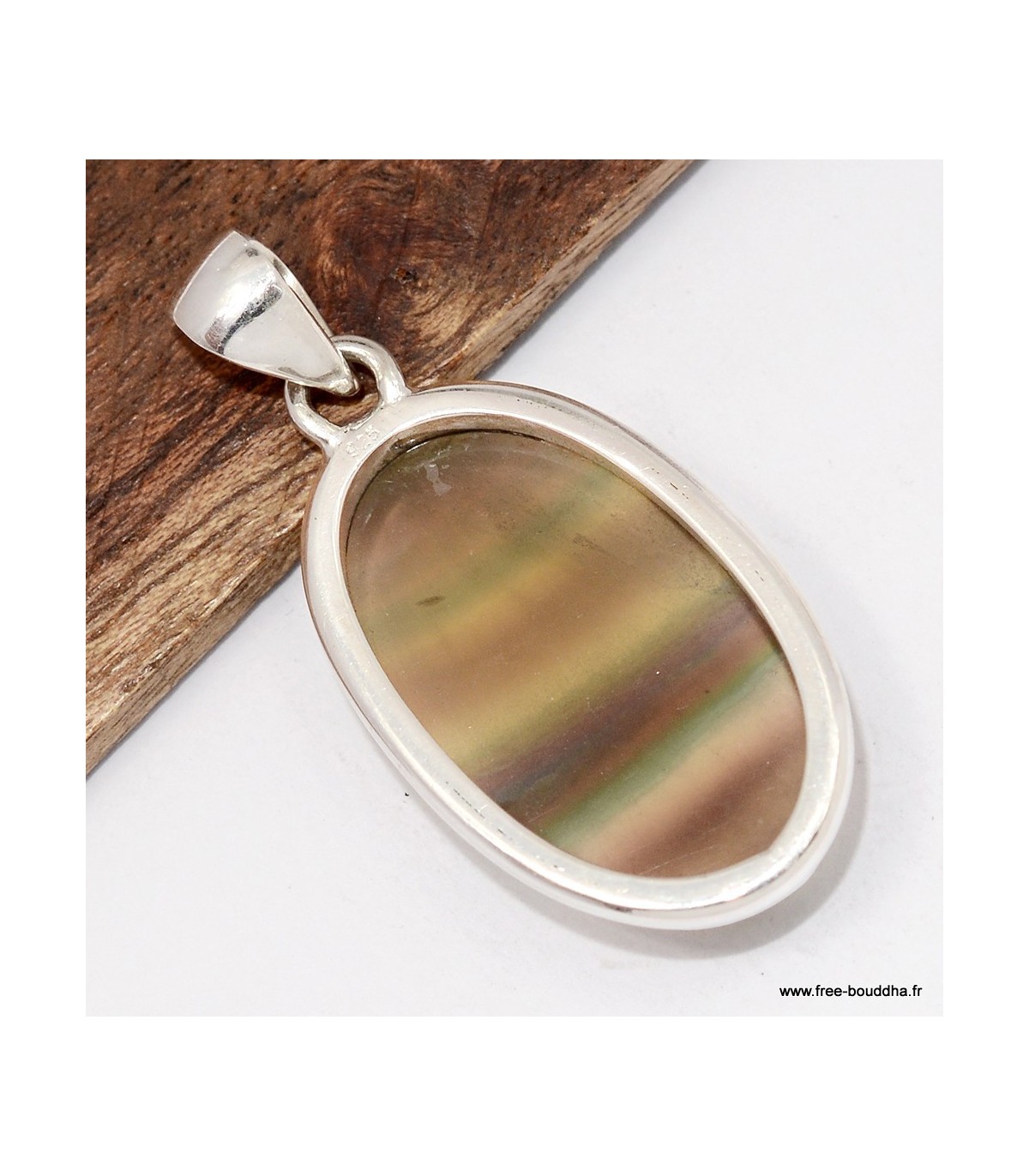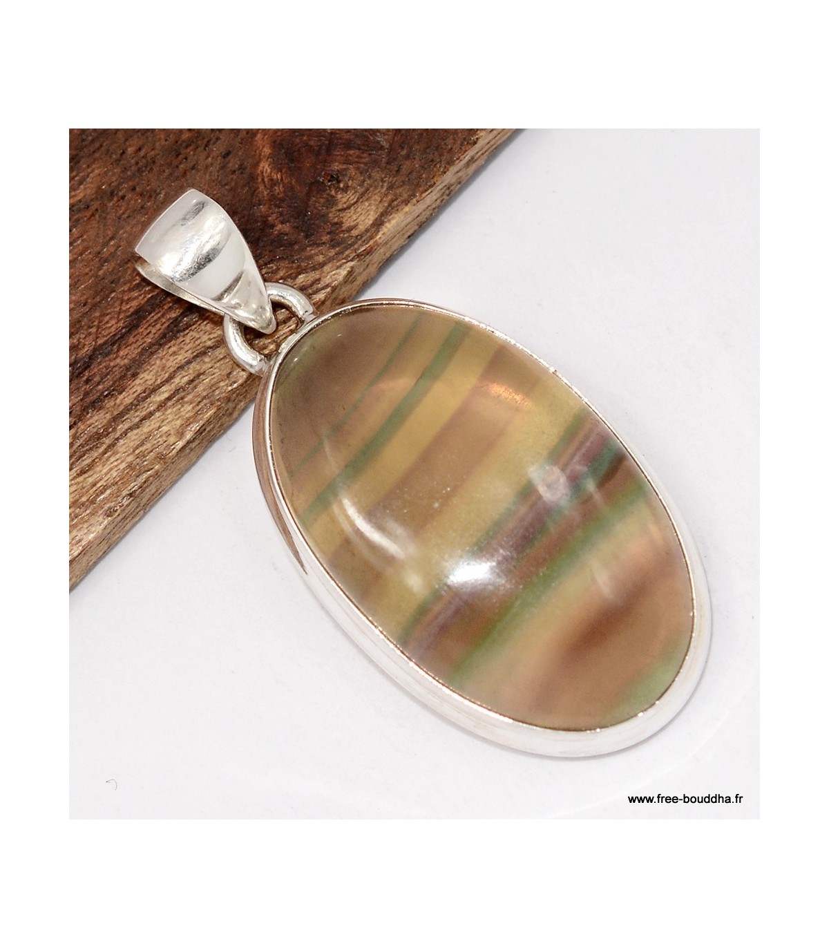 Pendentif Fluorite arc‑en‑ciel bande verte ovale – Argent 925