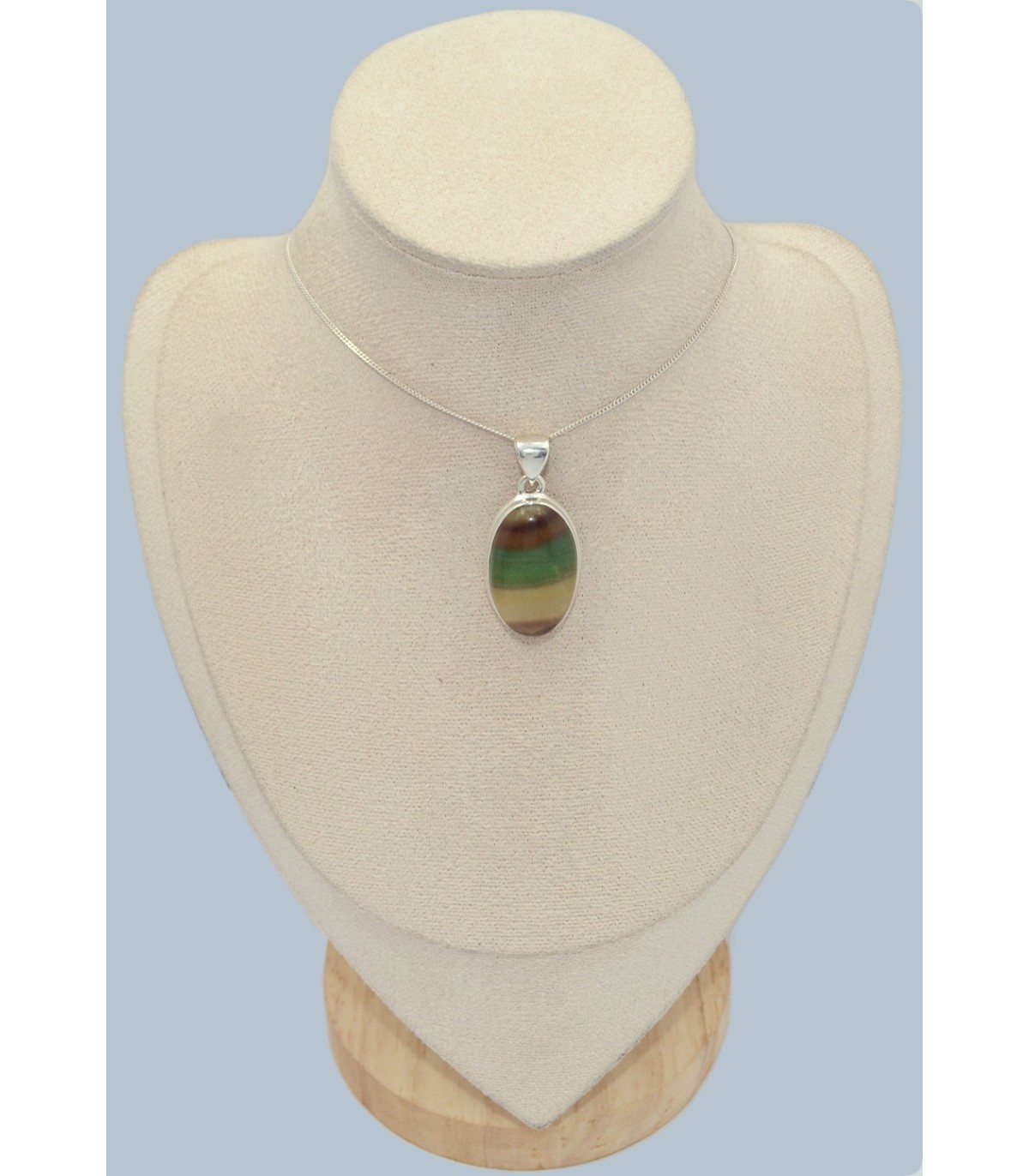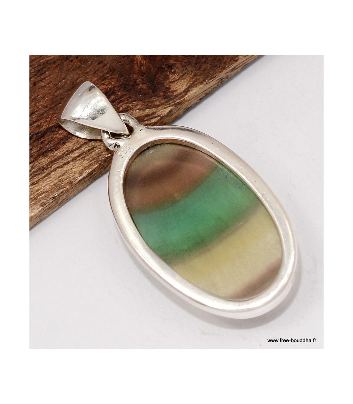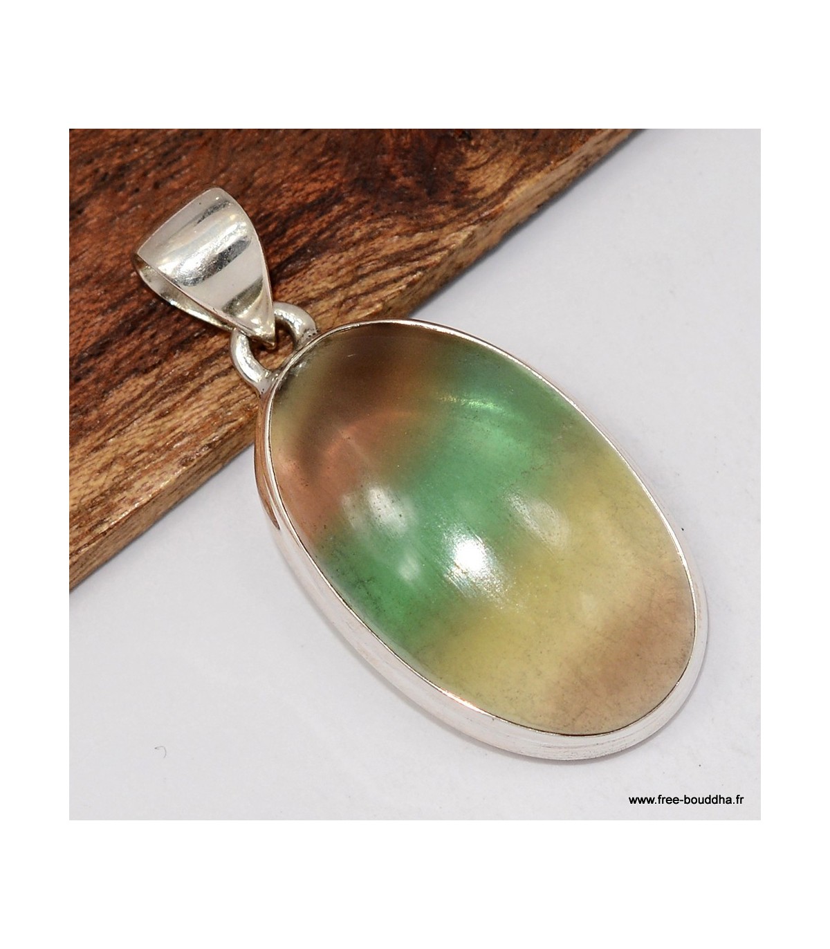 Pendentif Fluorite arc-en-ciel vert jaune, argent 925