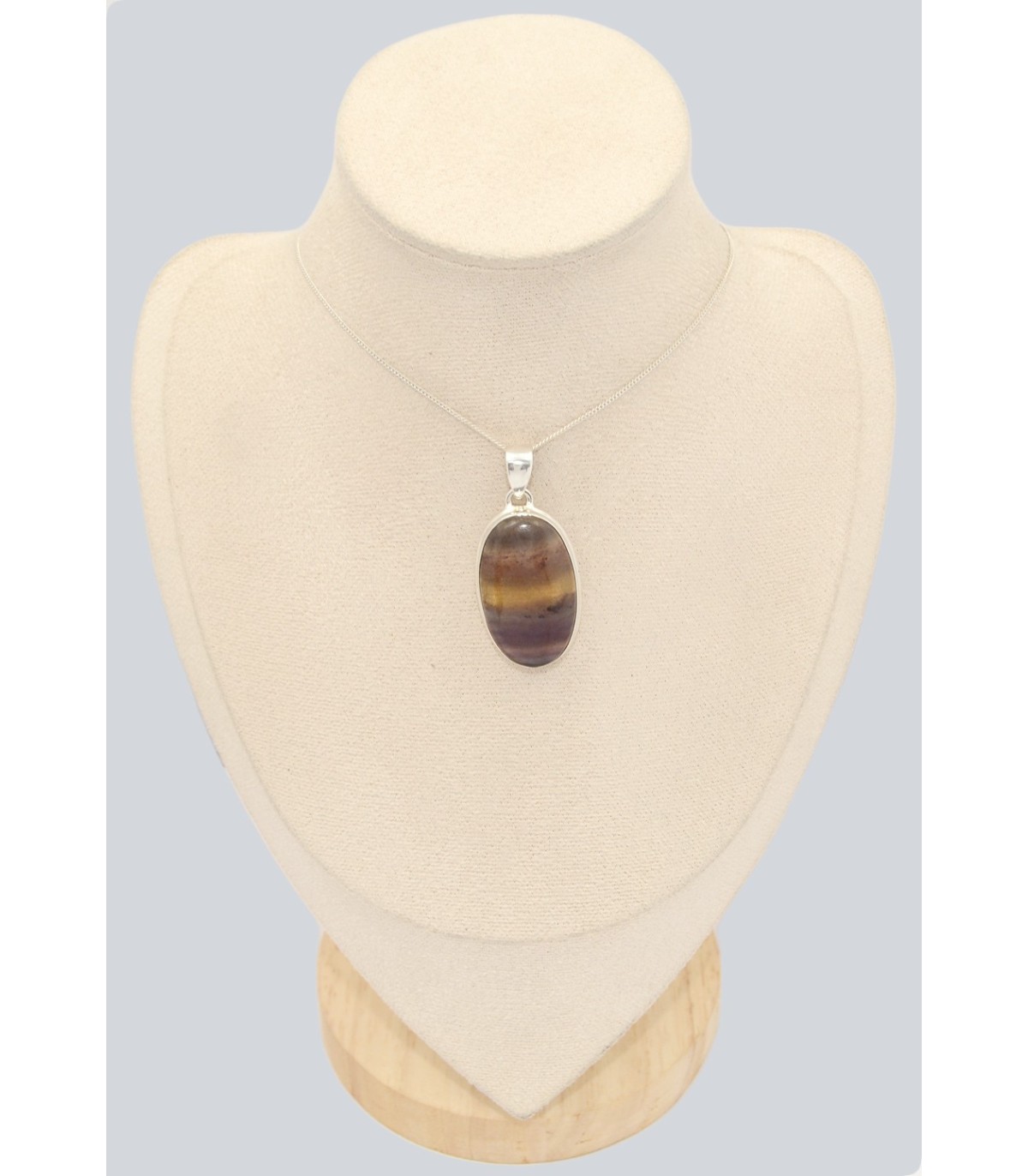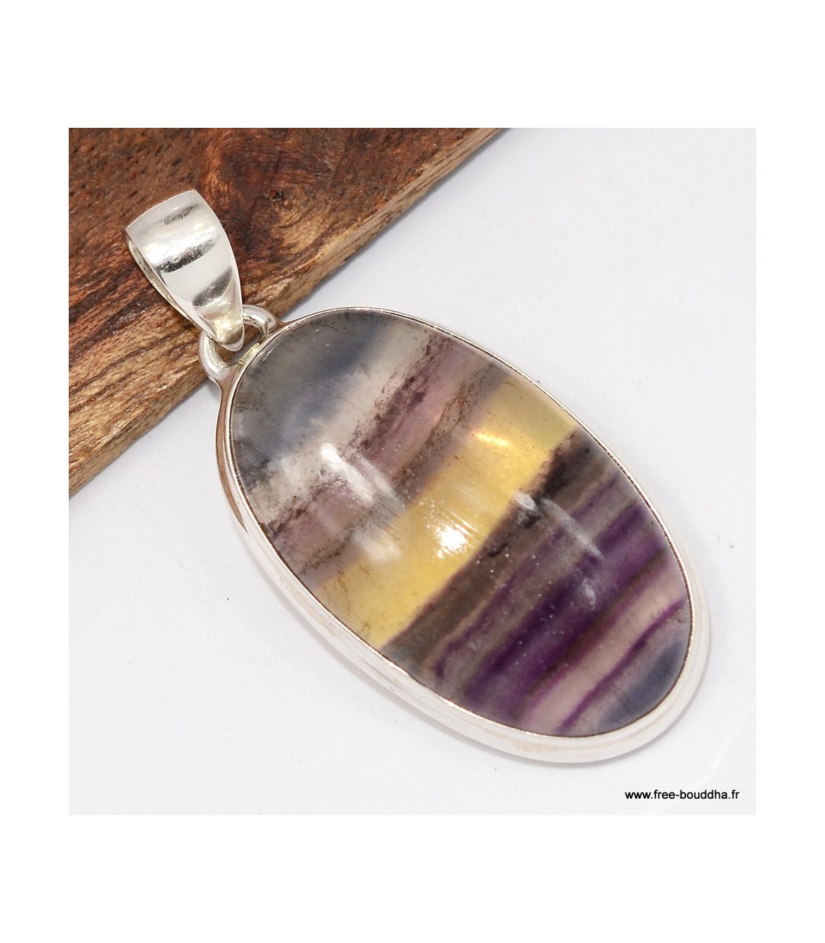 Pendentif Fluorite arc‑en‑ciel jaune violette – Argent 925