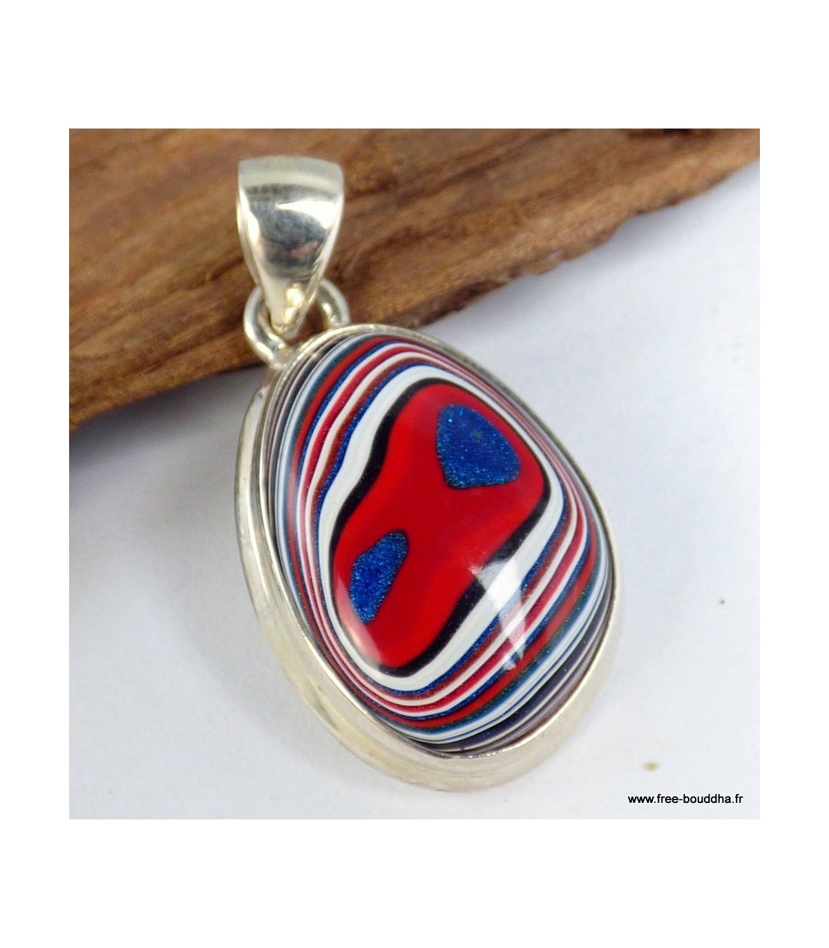 Pendentif Fordite Agate Detroïte oval rouge bleu et argent 925