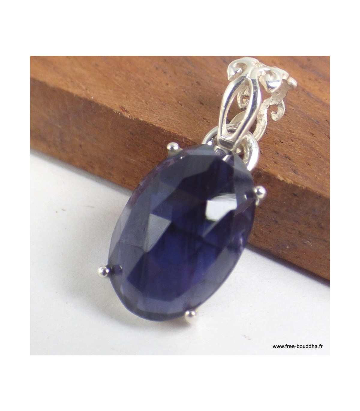 Pendentif Iolite facetté ovale, détail bélière – Argent 925 poinçonné