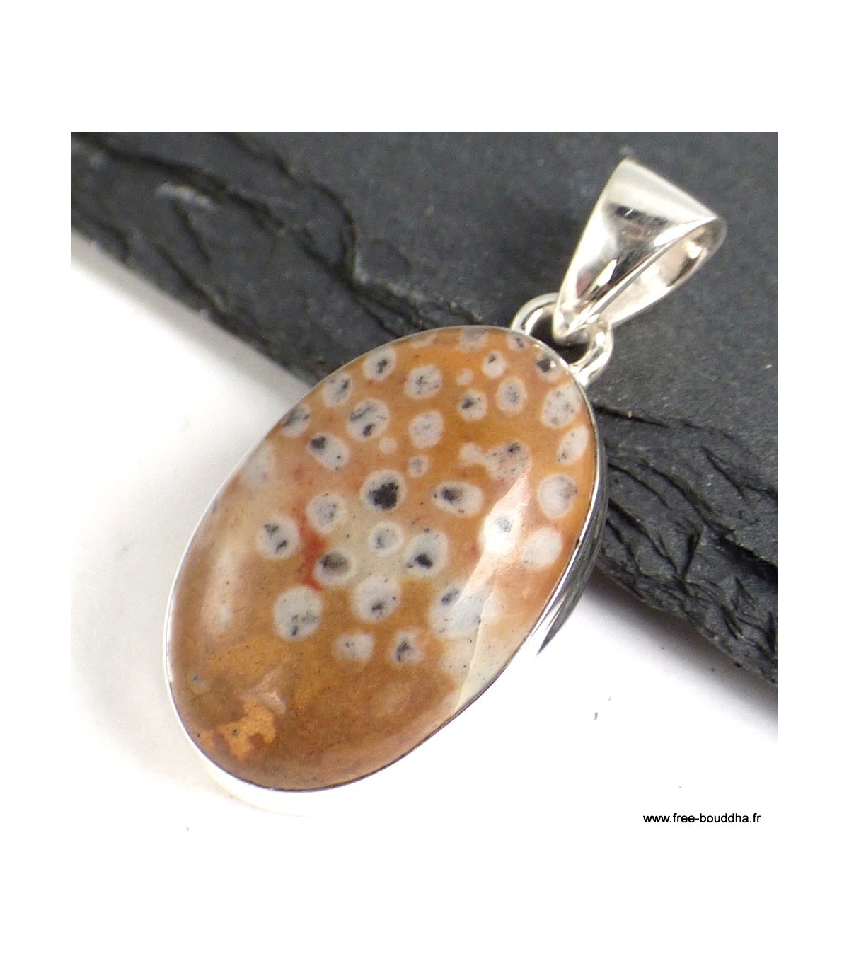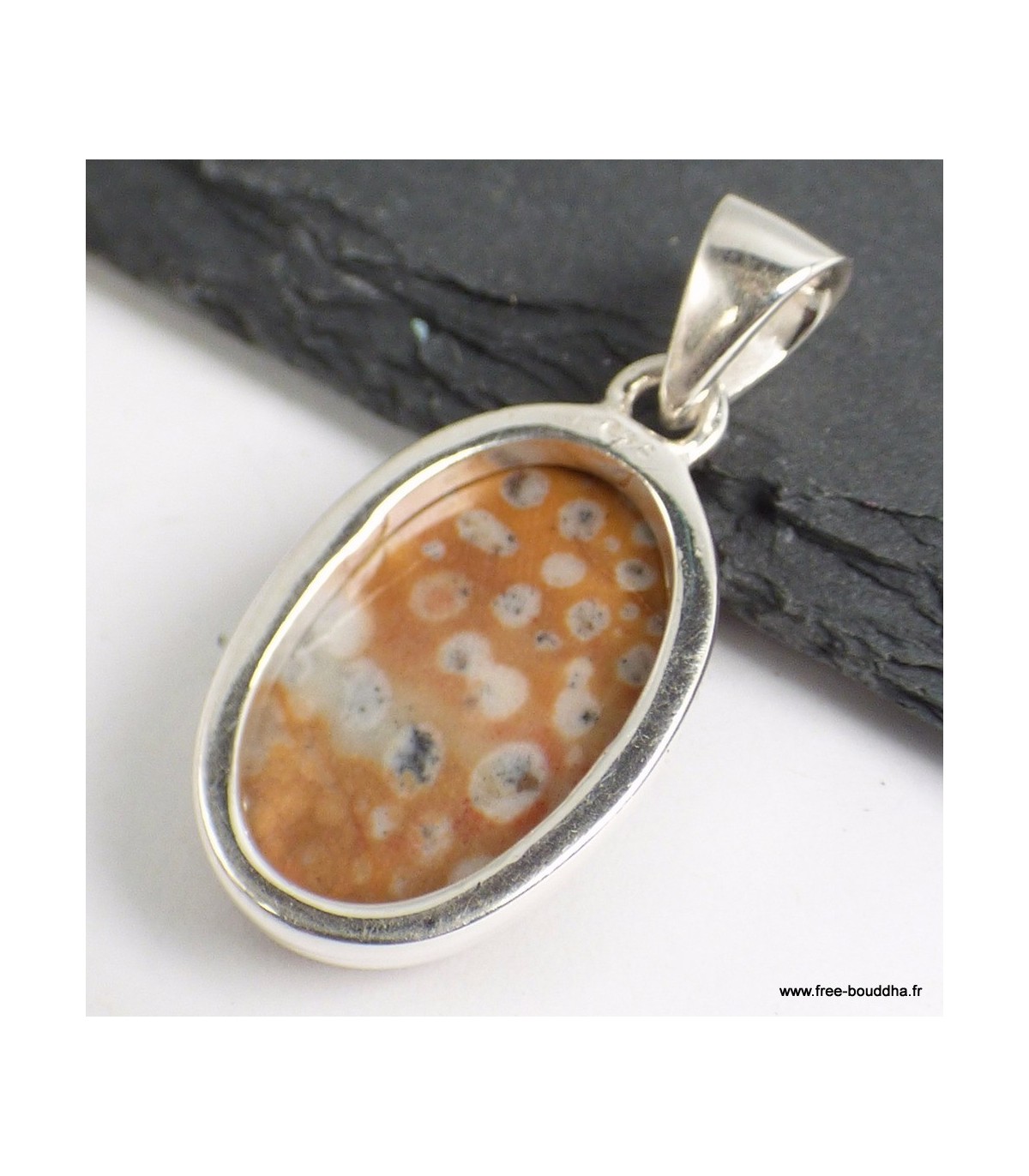 Pendentif ovale Jaspe Faon – Argent 925 certifié