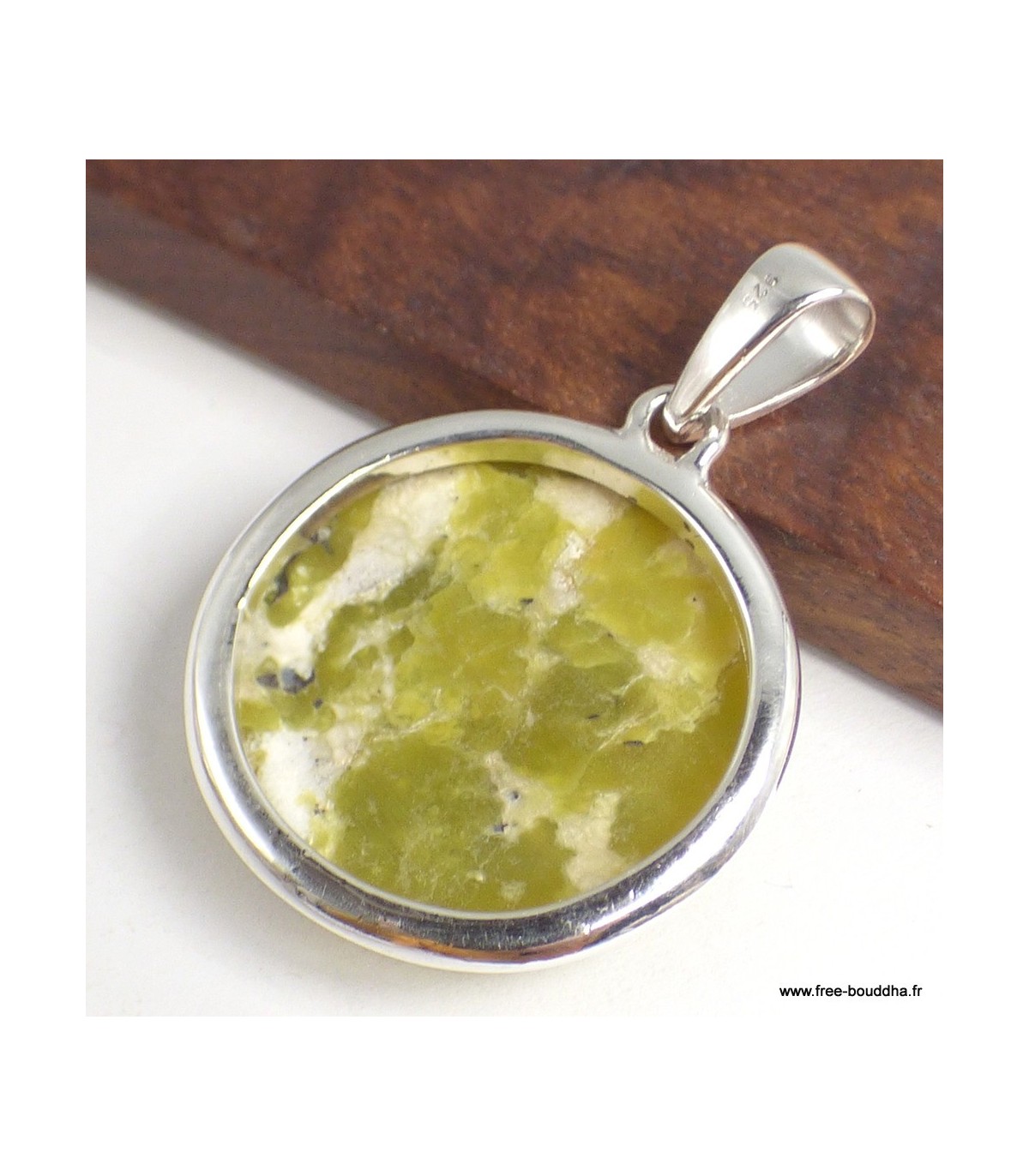 Pendentif Lézardite Serpentine authentique forme ronde – Argent 925 poinçonné