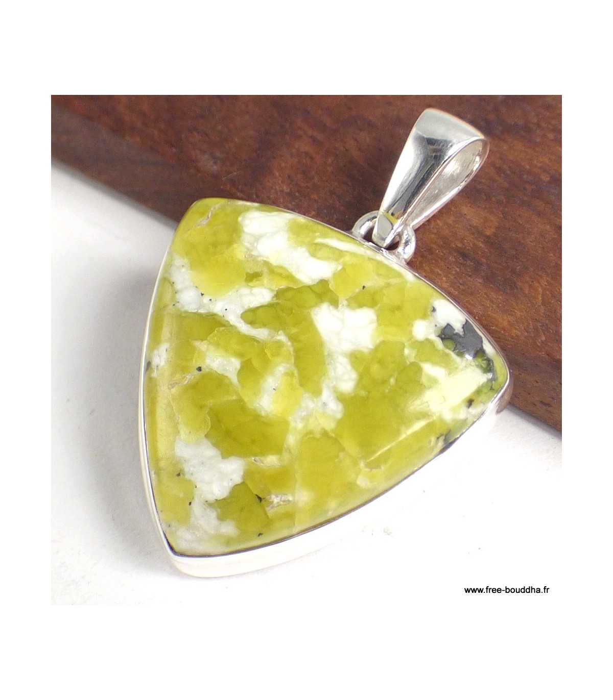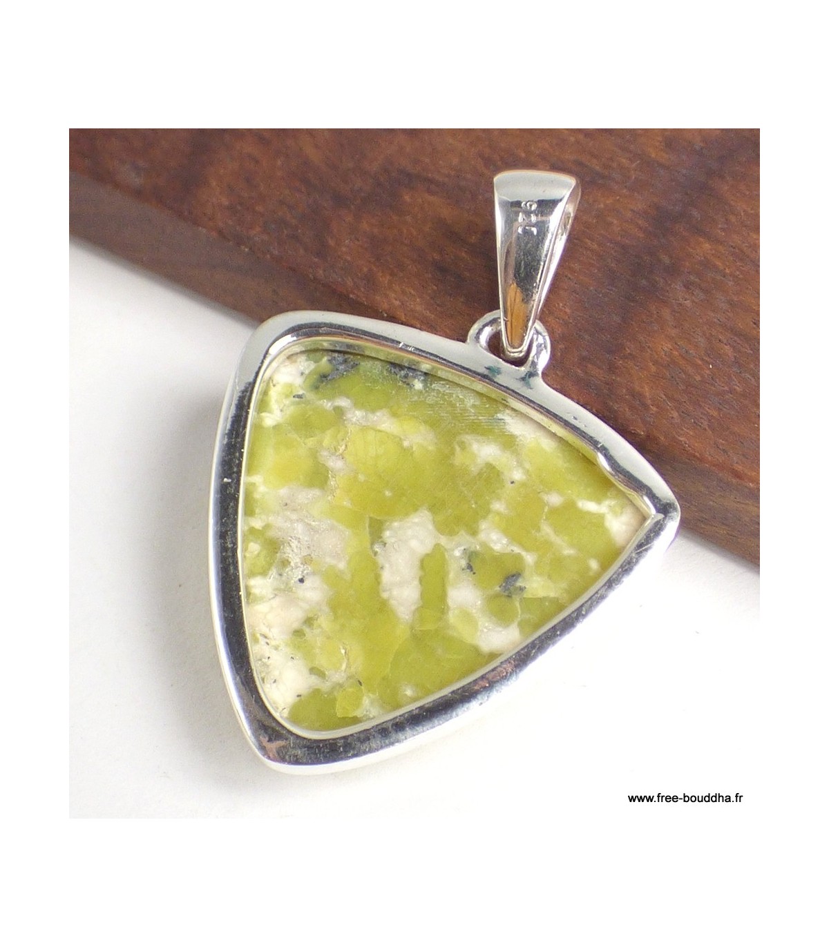 Pendentif Lézardite Serpentine authentique forme triangulaire – Argent 925 poinçonné