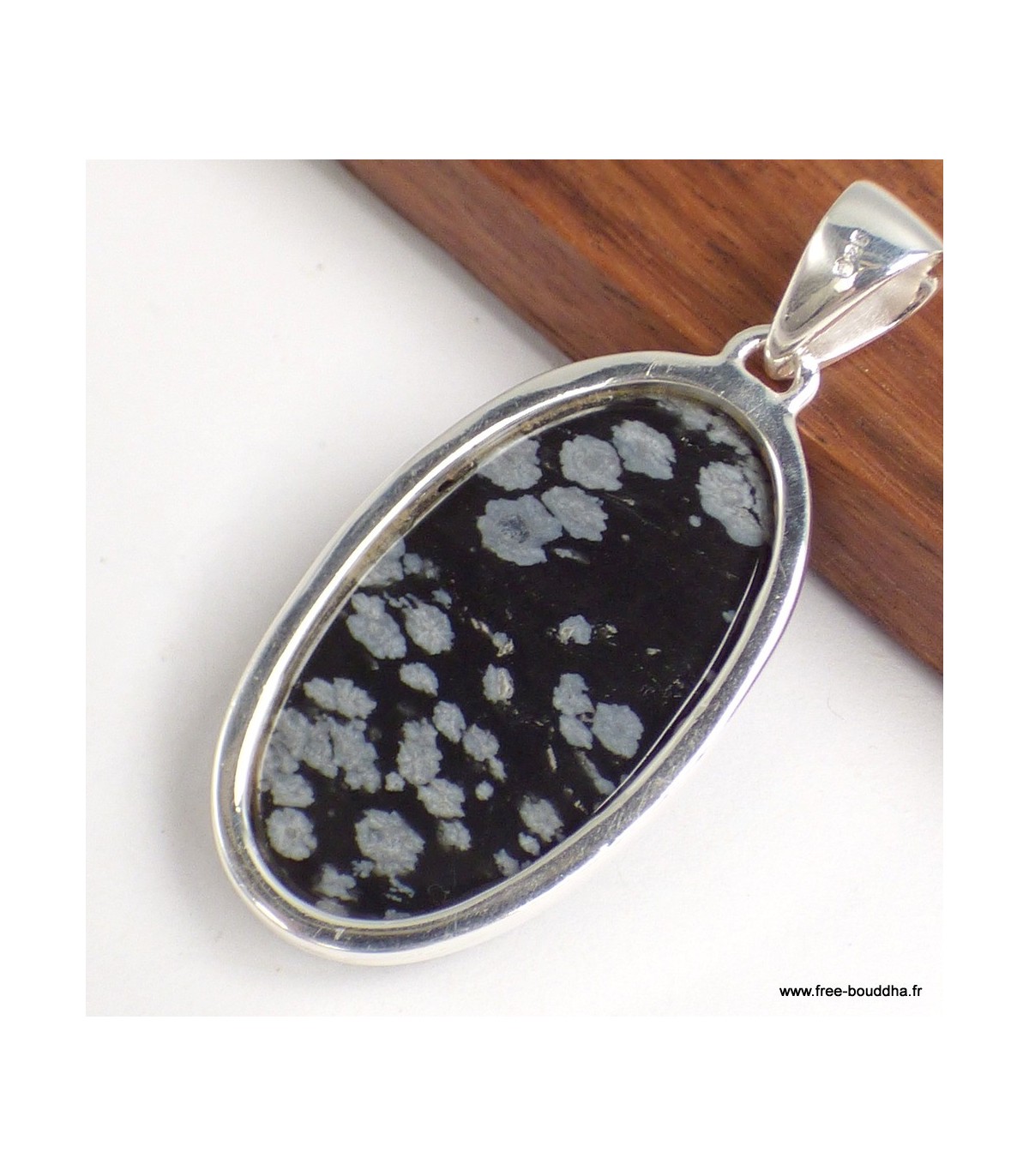 Pendentif Obsidienne floconneuse ovale argent 925 véritable