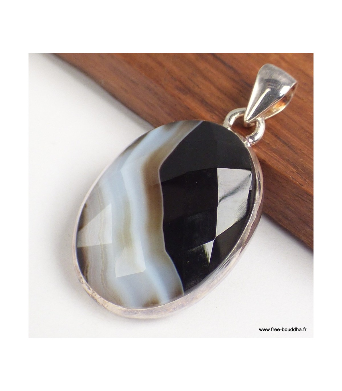 - Pierre : véritable Agate noire à bandes, facettée et naturelle