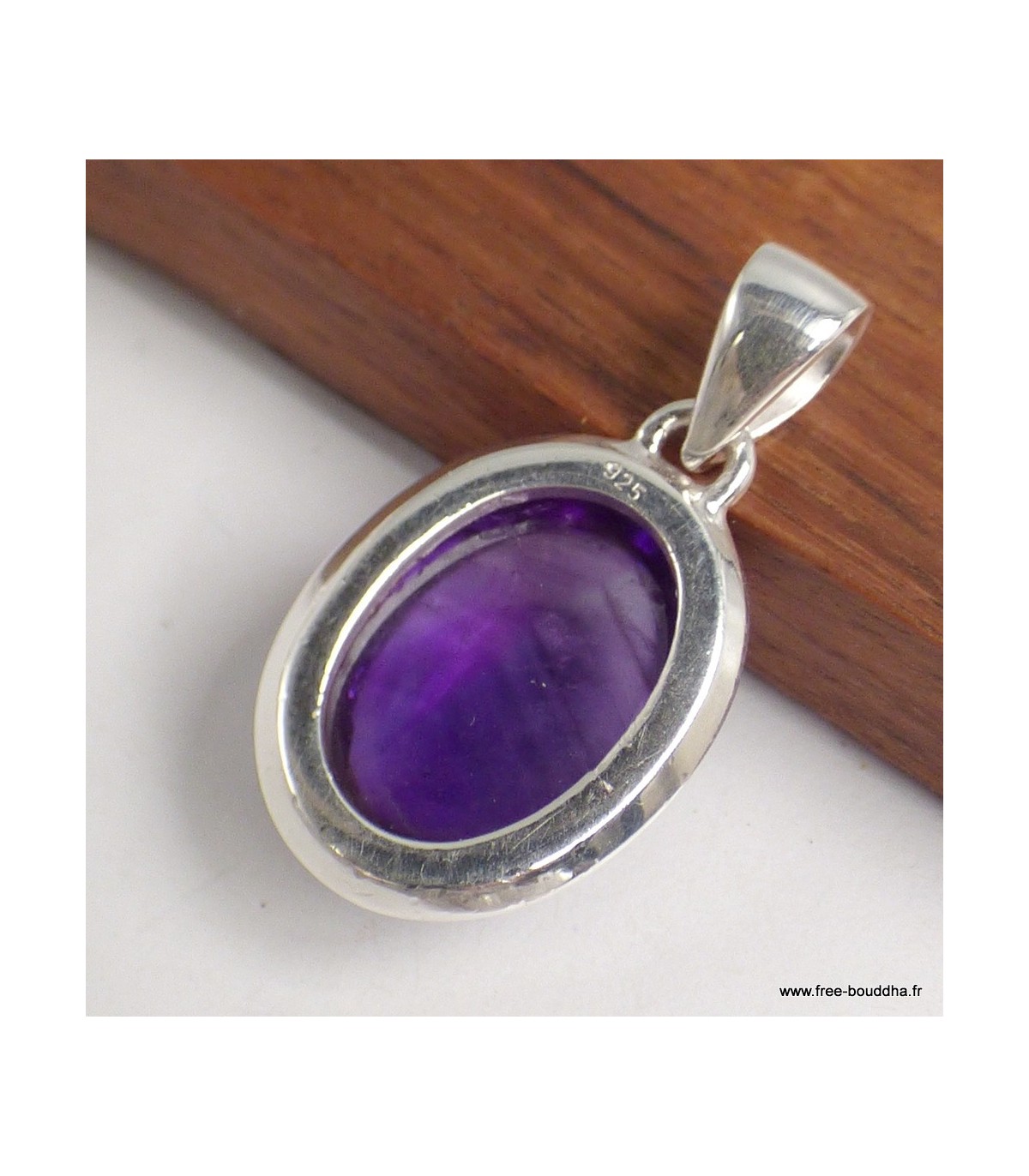 Ce pendentif met en lumière une améthyste naturelle de qualité AAA, taillée en cabochon ovale pour révéler toute la profondeur de sa teinte violette. Sa monture en argent massif 925 poinçonné souligne l’élégance de la pierre tout en assurant une finition durable et raffinée.