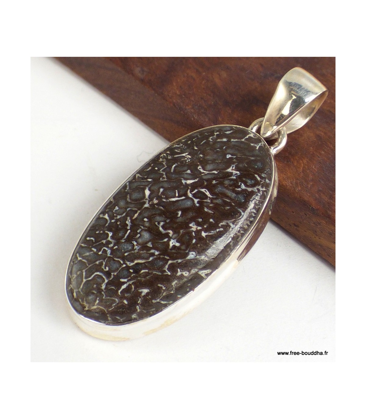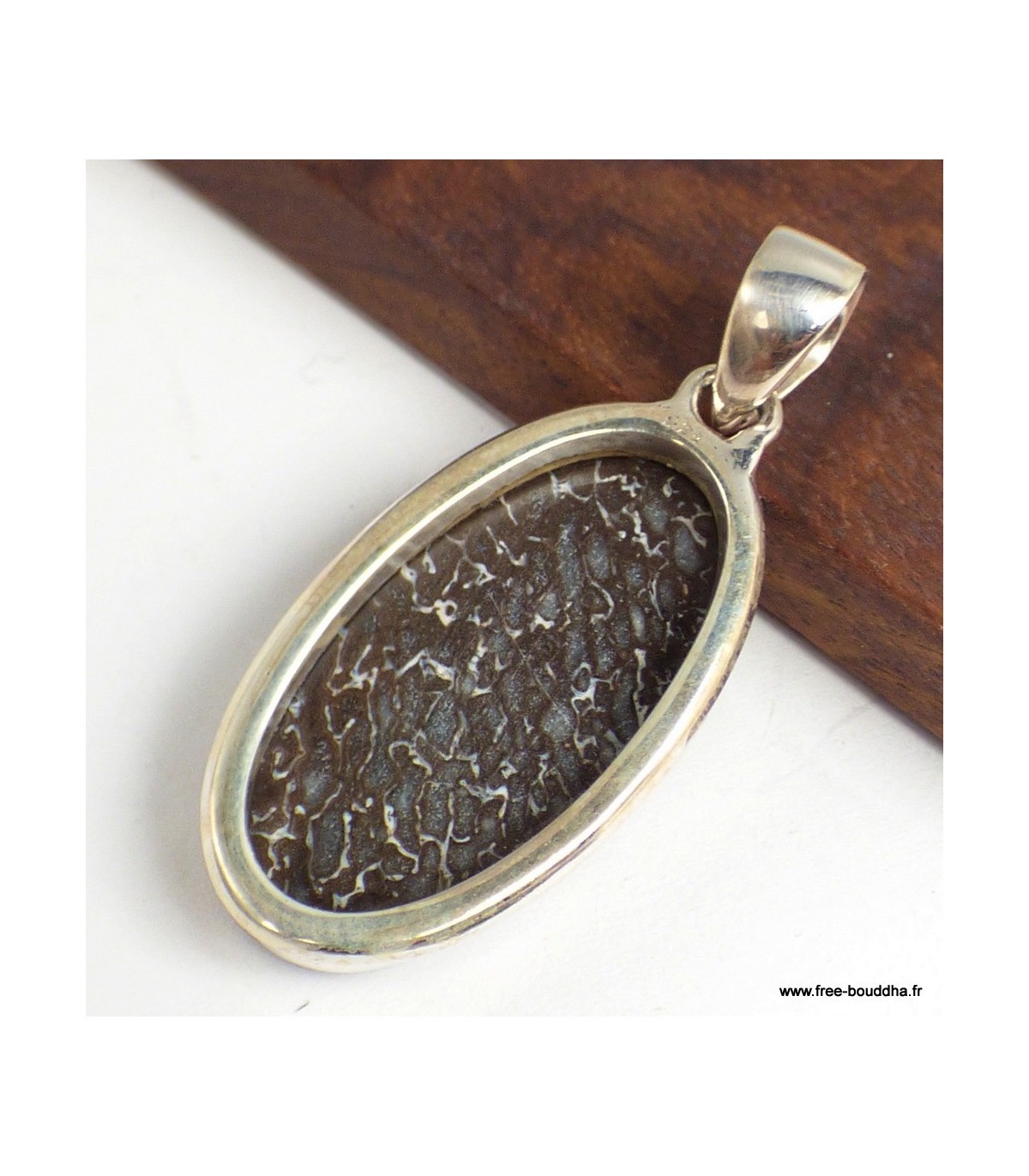 Pendentif ovale en Os de dinosaure et argent 925