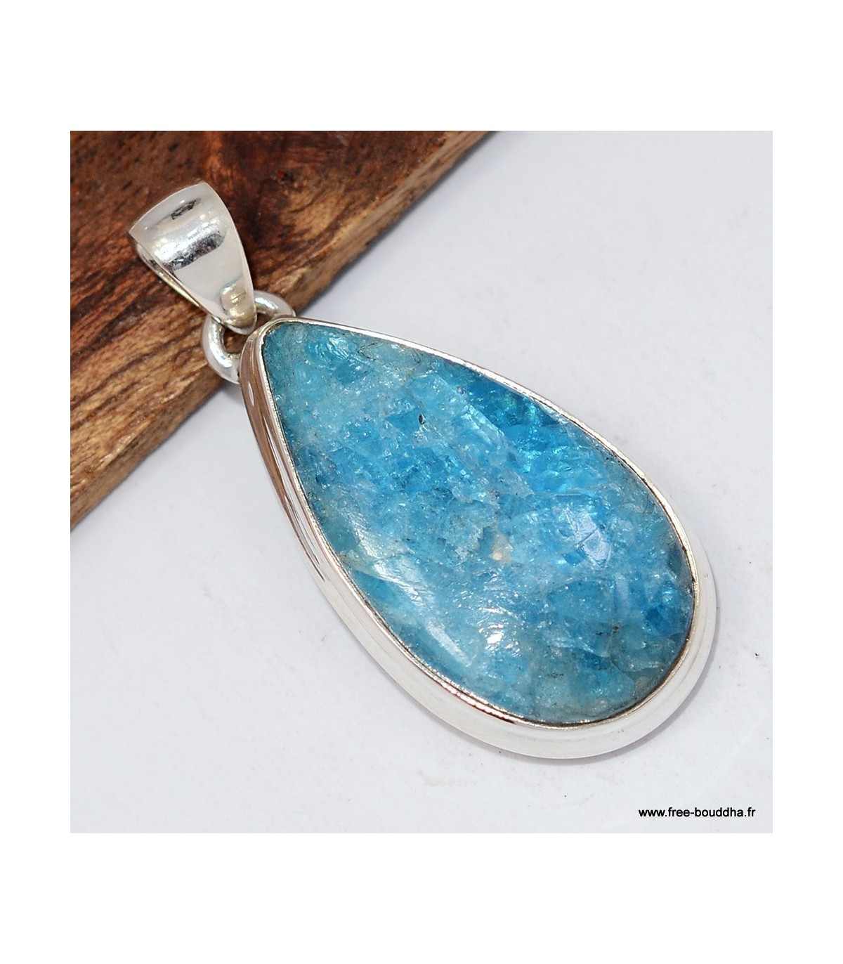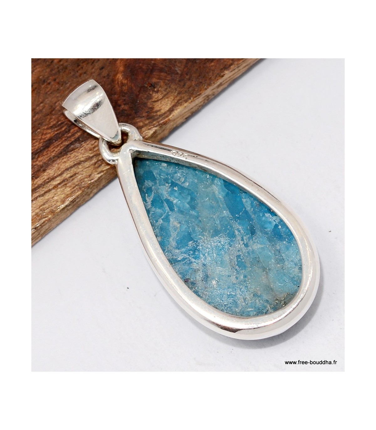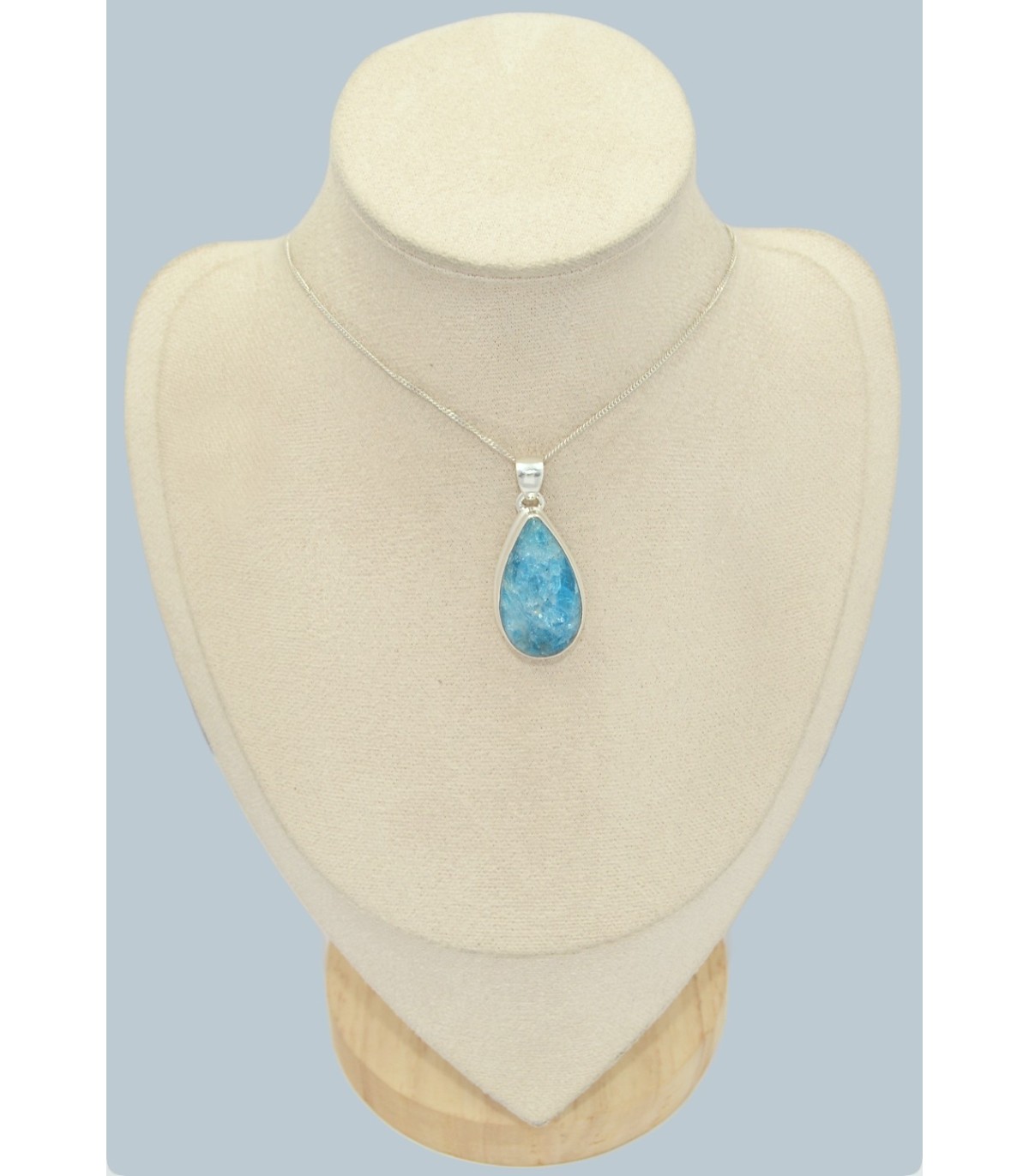Pendentif Apatite bleue néon – Argent 925 – Certifié authentique
