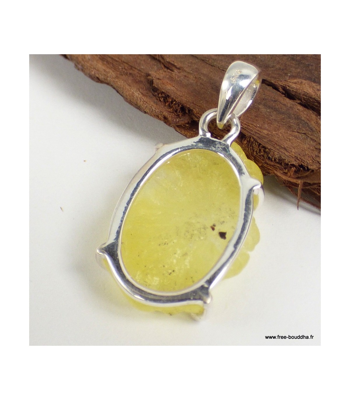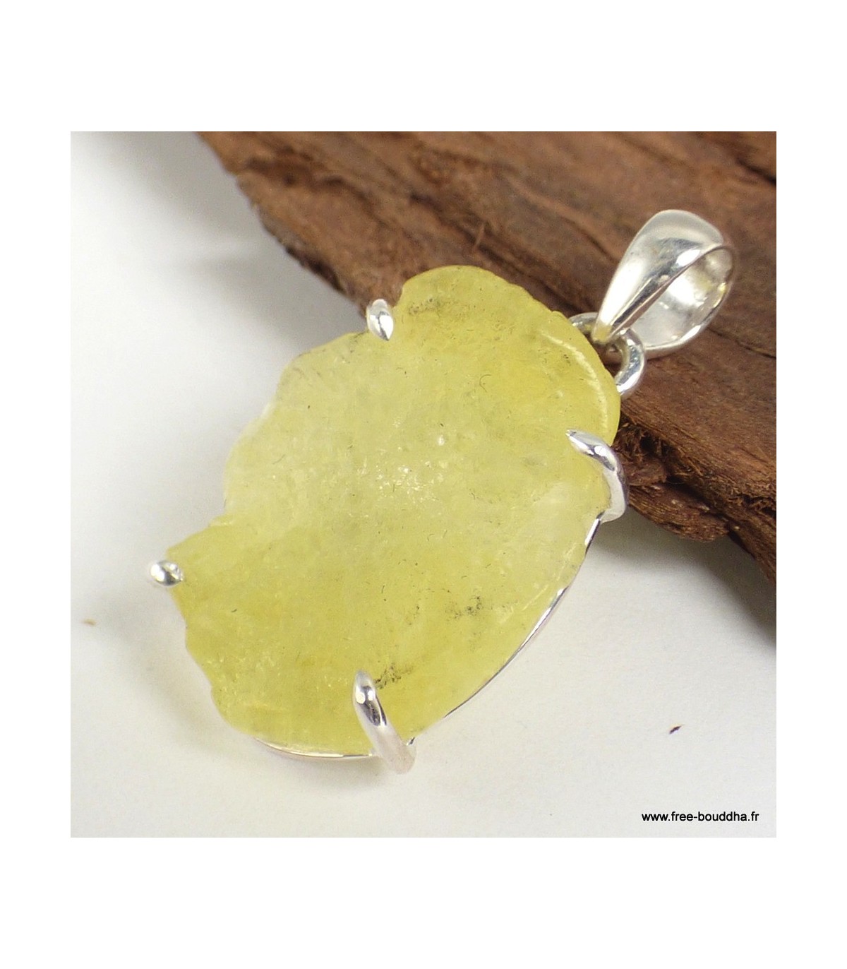 Ce pendentif met en valeur une véritable brucite jaune, pierre naturelle rare à l’éclat solaire et aux reflets lumineux. Sa teinte jaune citron apporte une touche de vitalité et d’originalité. La pierre est montée sur une base en argent massif 925 poinçonné, dans un format discret et raffiné.