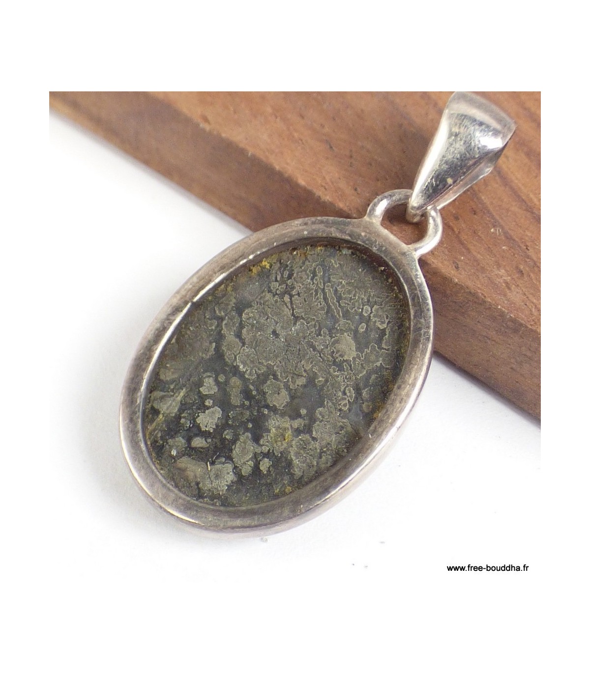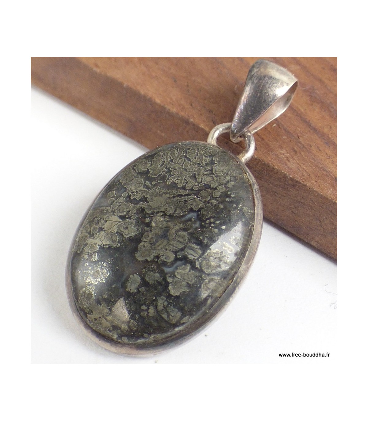 Pendentif bijou Pyrite sur Agate bleue semi-oval argent 925