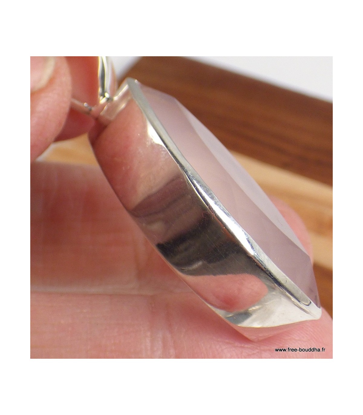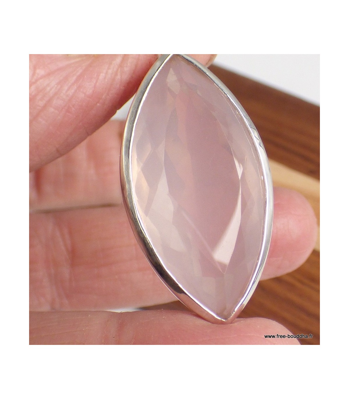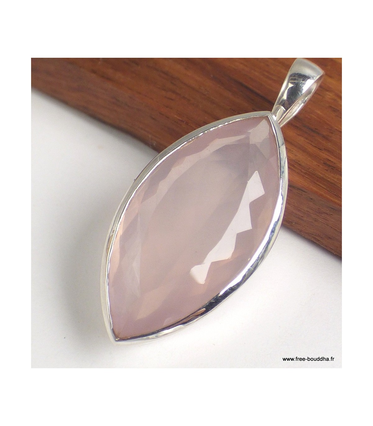 Pendentif Quartz rose facetté marquise argent 925 – Bijou pierre naturelle
