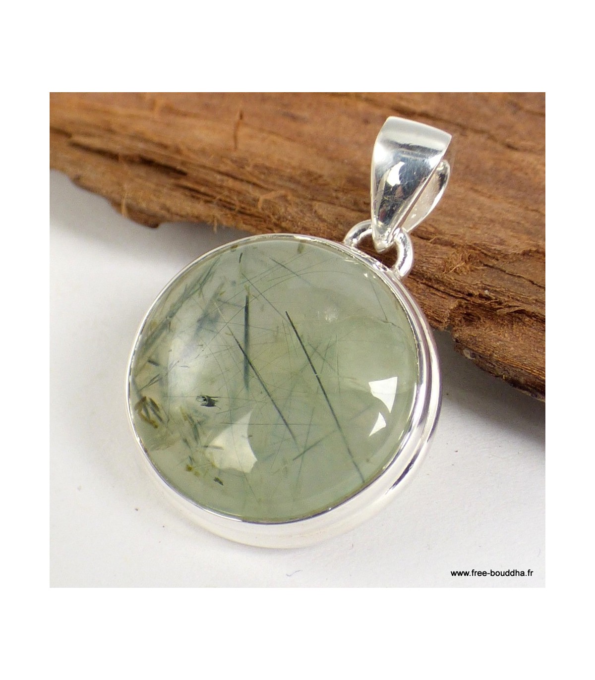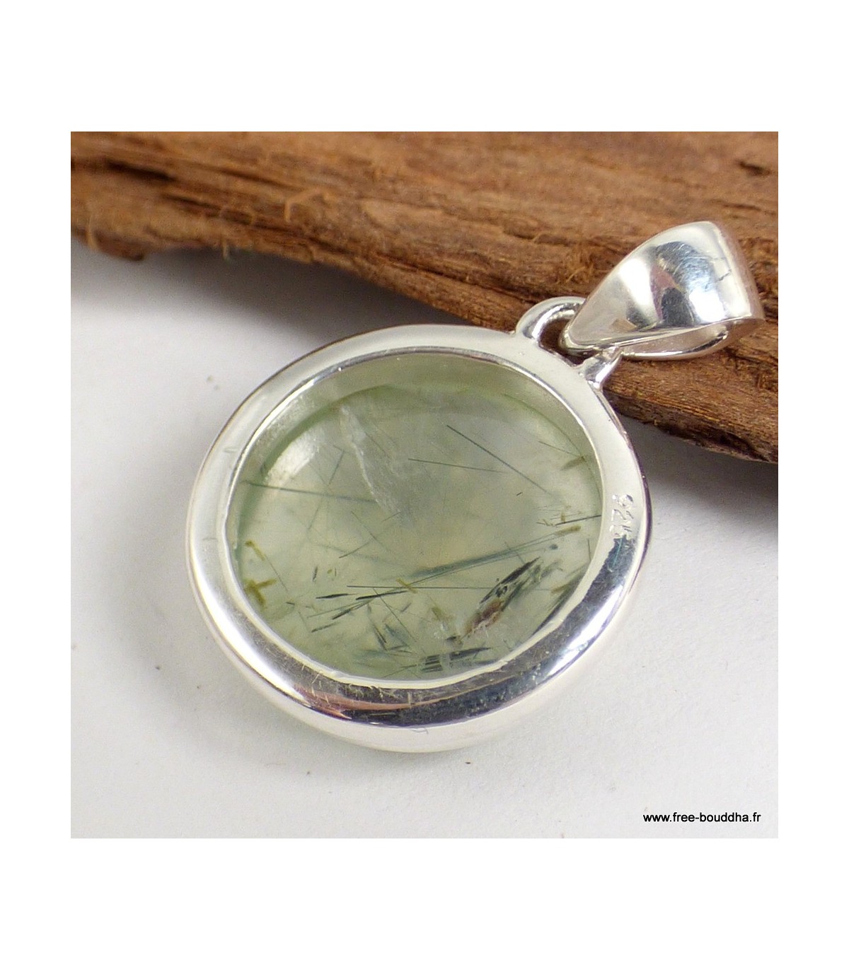 Pendentif Quartz Rutile noir sur Préhnite – argent 925