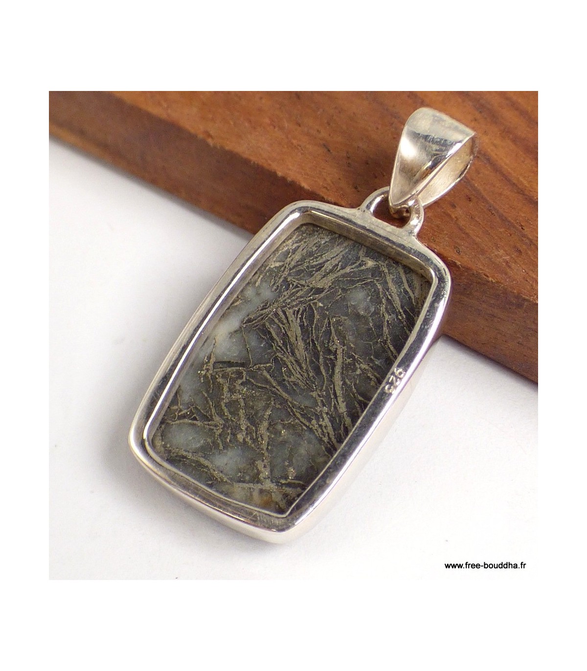 Pendentif Pyrite Plume rectangle argent 925 authentique