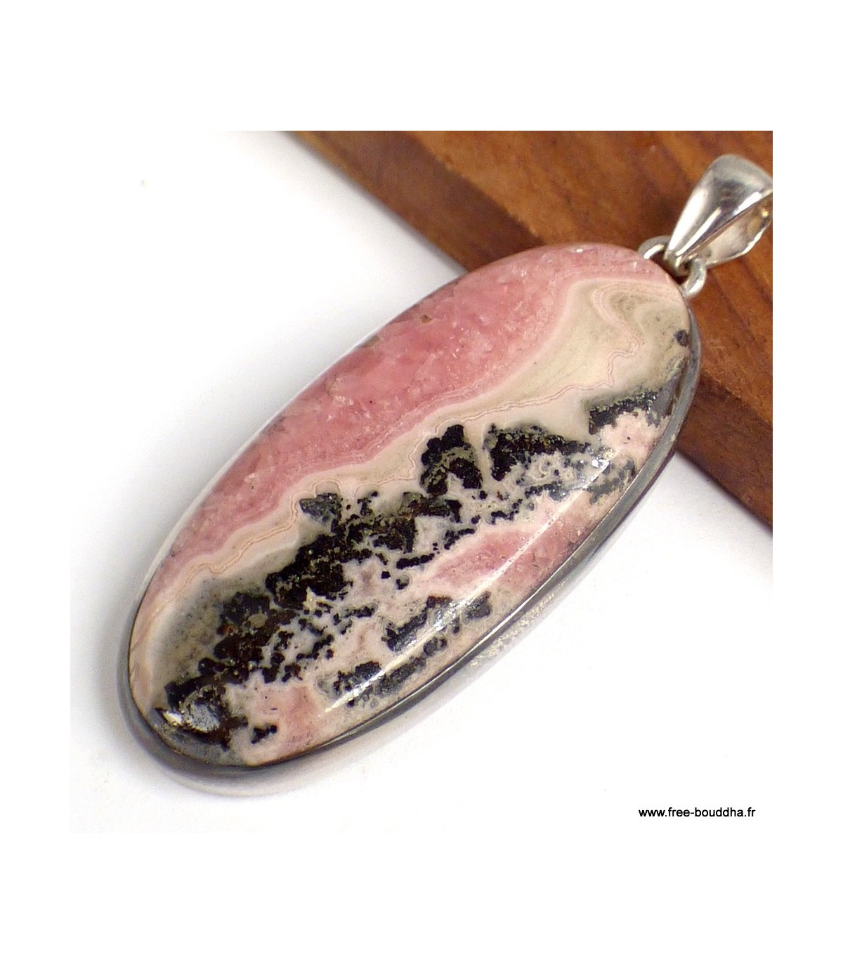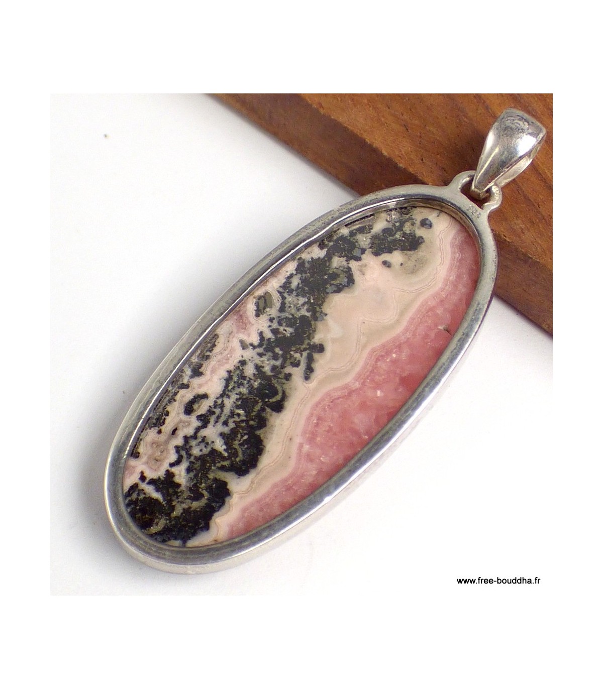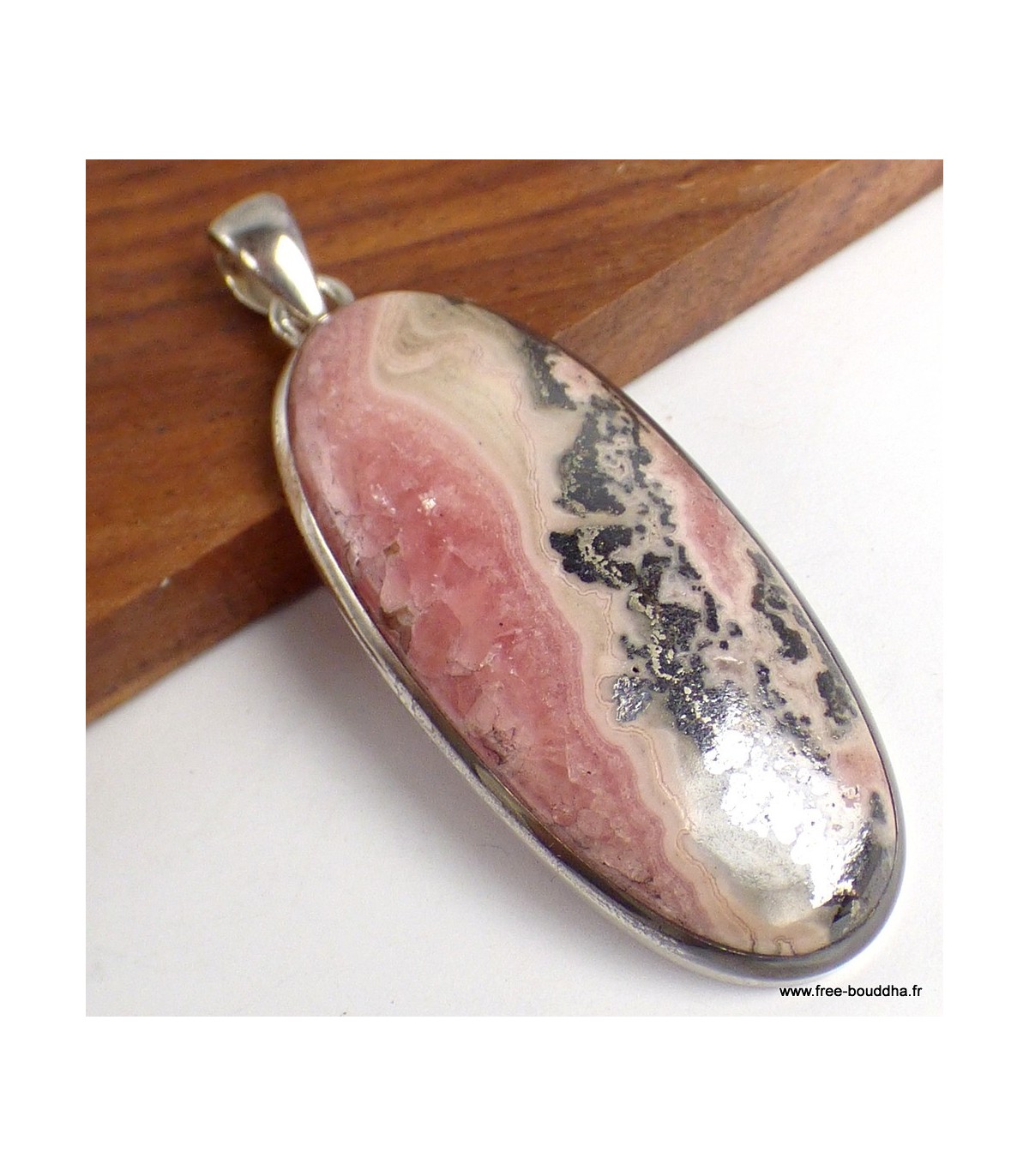 Pendentif Rhodochrosite sur Pyrite forme allongée – Argent 925