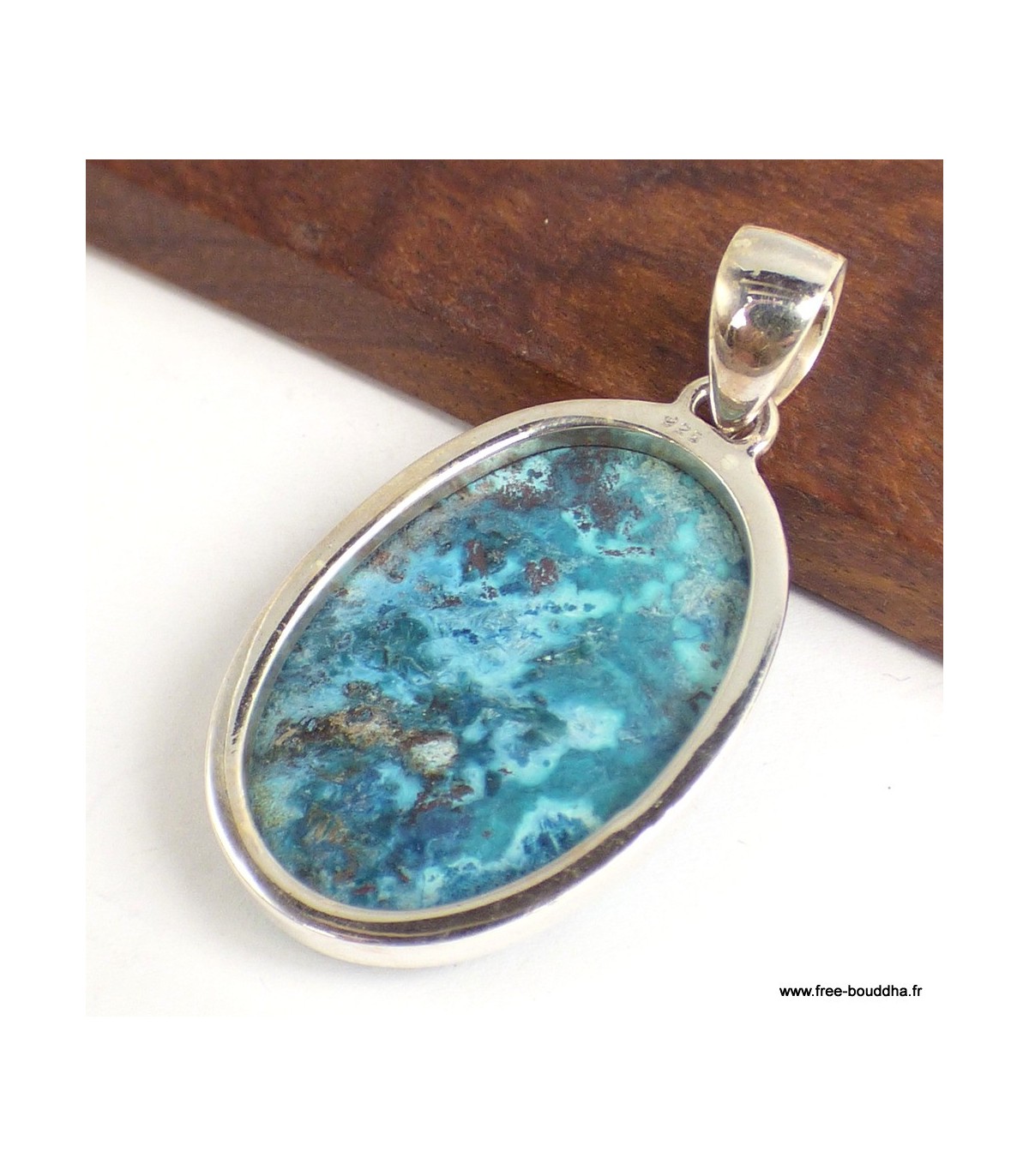 Pendentif Shattuckite ovale d'Arizona argent 925