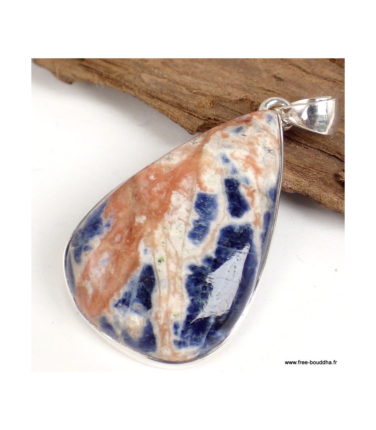 Pendentif en sodalite orange – forme goutte – argent 925