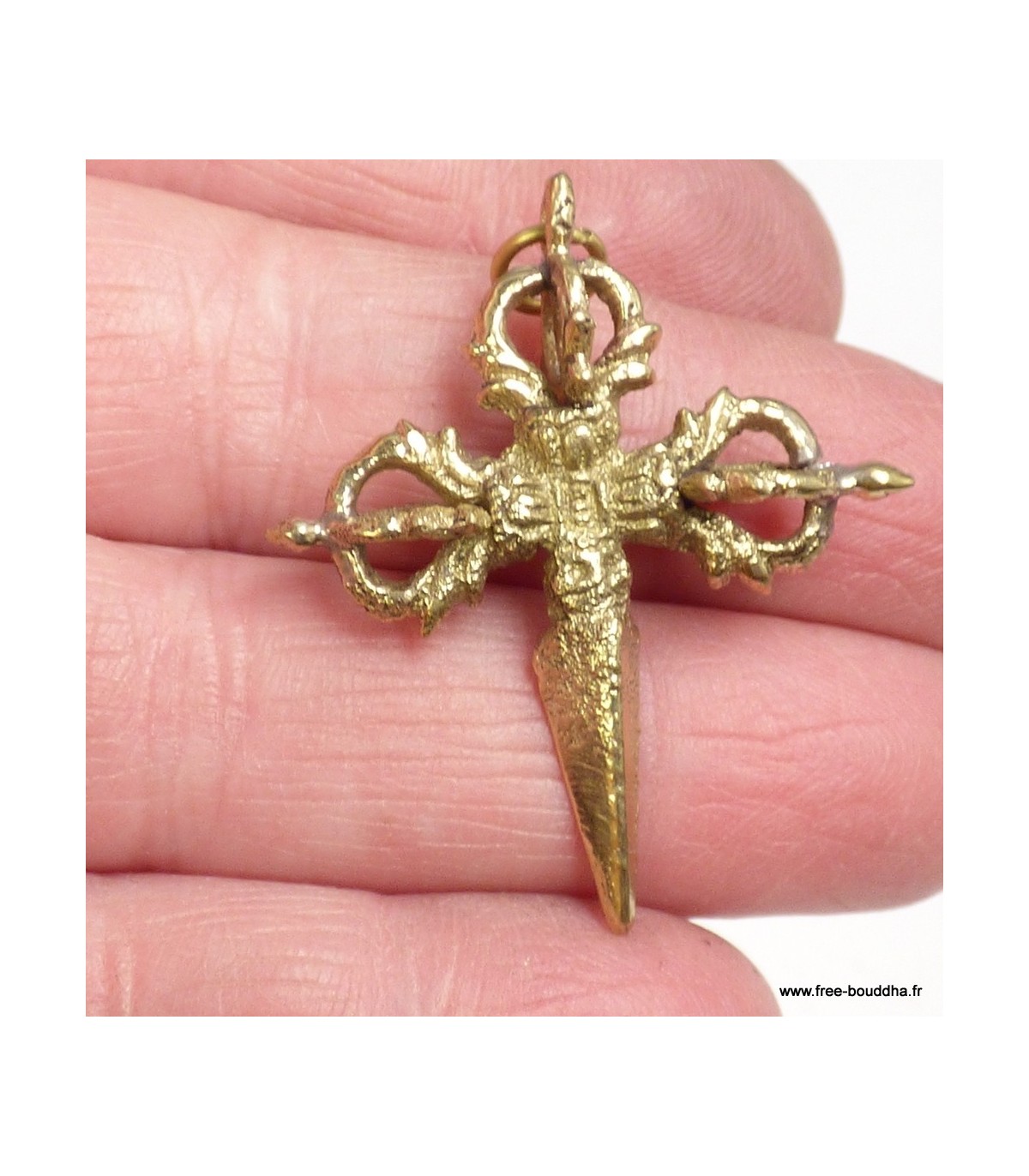 Pendentif tibétain Phurba et dorjé en laiton – Dorjé 4 branches + cordon