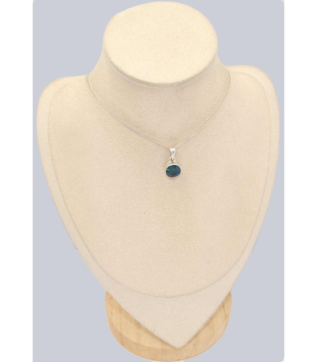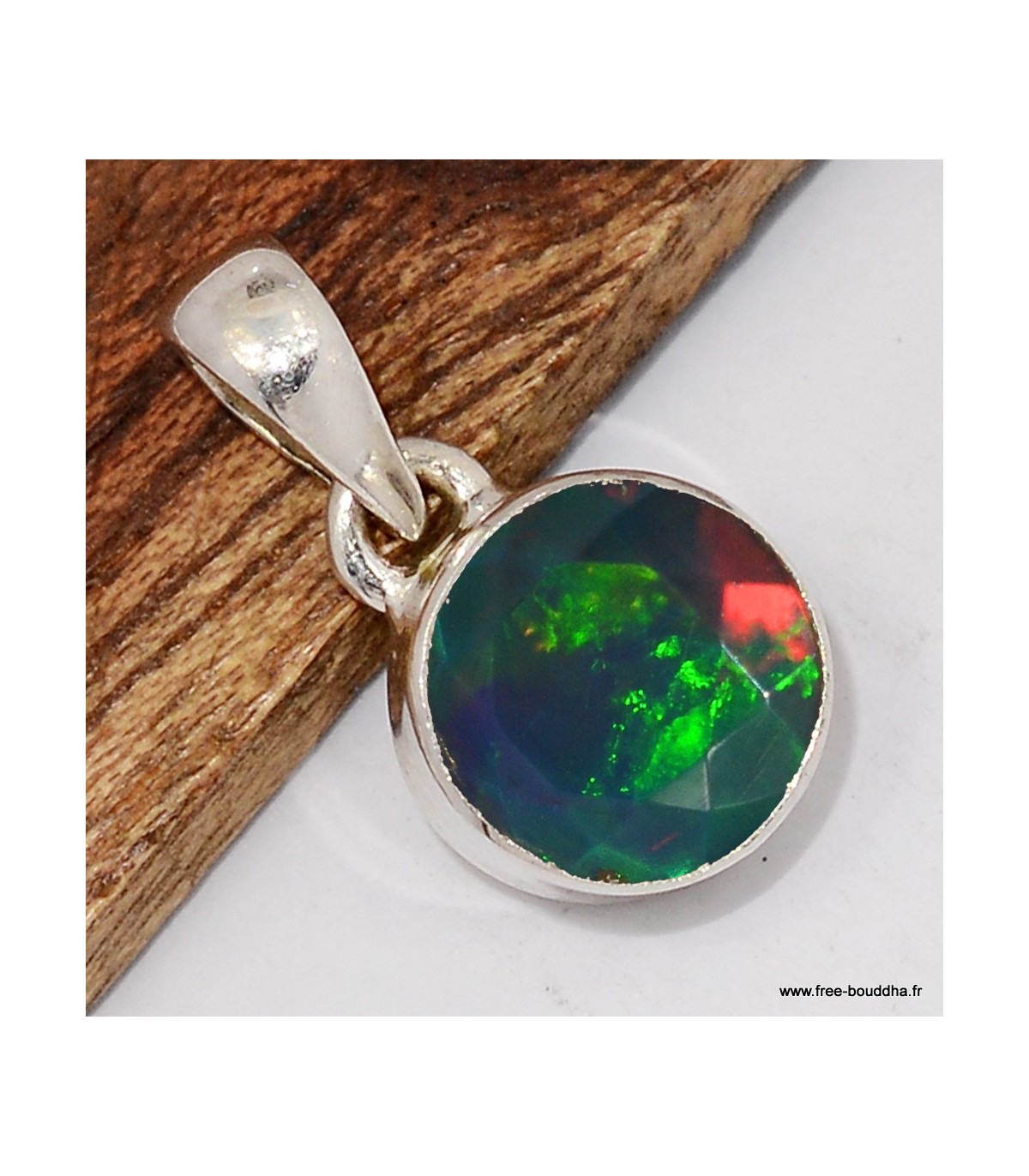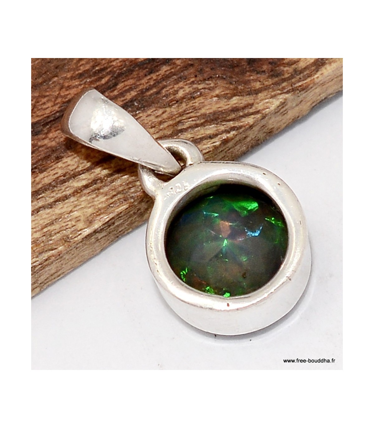Pendentif en véritable opale noire facettée – Monture argent 925