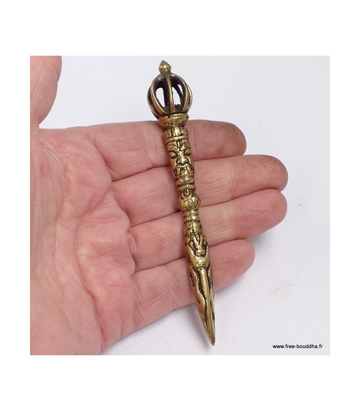 Phurba tibétain authentique couronne Dorjé – 11 cm (Népal)