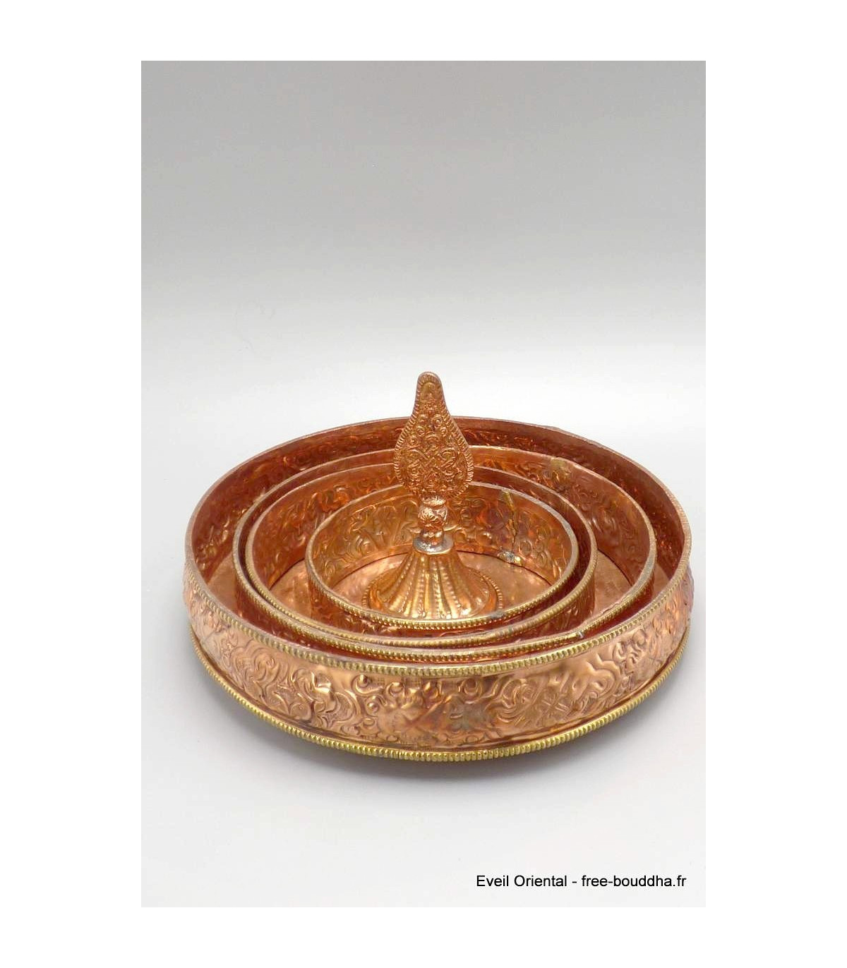 Plateau et anneaux pour offrandes du mandala – 18 cm en cuivre