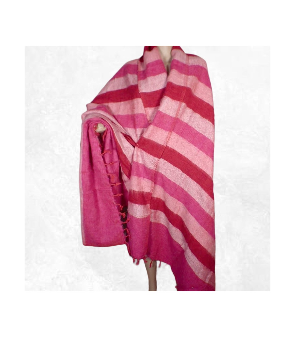 Très grand châle népalais dégradé fuschia à rayures – 240 x 120 cm